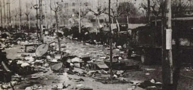 这张里看着乱七八糟的街面就是城破后的日常,锅盆翻在地上,衣被散一地,电线杆子直愣愣地排着队,没人去扶,奶奶说那几天只要风一吹,尘土和灰烬就往眼睛里钻,现在扫地机器人在屋里转,地面净得能照人,想起那时心里还是发酸。