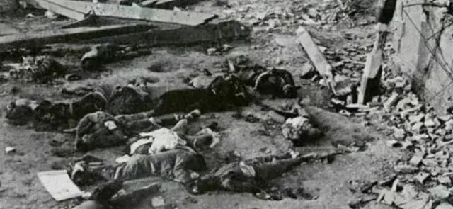 这堆散落在墙根下的身影,看一眼就知道是巷战后的样子,砖块崩塌,木板歪在一旁,鞋子单出来,脚却没了,小时候我在相册上摸过这种白点点的颗粒,爷爷把本子合上说,别摸。