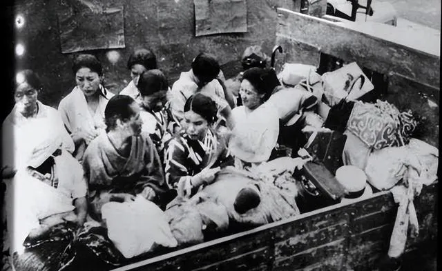 这车厢里坐的全是女人和孩子,包袱叠着被褥,脸上年纪有大有小,肩并着肩,手挨着手,谁都不敢抬头,车帮子上刮花的痕迹一条条,像刀口。