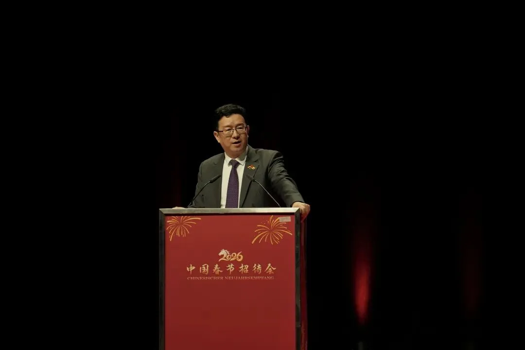 黄昳扬总领事向来宾致以马年新春祝福,对斯图加特市政府和展会集团为活动举办给予的大力支持致以诚挚谢意。他表示,在当前国际形势复杂多变的背景下,更应以长远视角看待中德伙伴关系。黄总领事从“远与近”“大与小”“快与慢”三个维度阐释中德关系的辩证内涵,指出地理距离不妨碍民心相通,不同发展节奏也能在相互理解中实现协同共进。中德作为全球第二、第三大经济体,应共同维护多边主义和自由贸易,发挥负责任大国作用。在新的一年里,总领馆愿同各界伙伴一道,为中德合作注入更多稳定性和新动能。