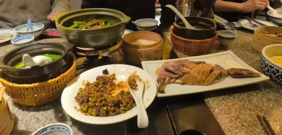 南京细雨连绵,我们下了高铁便开始美食之旅。第一顿我外甥宴请我们几位球迷在“常州青果巷”吃正宗的常州菜。我外甥是一家大公司常驻南京的总经理,常州是南京的近邻,南京有不少常州菜馆,青果巷是最有名的。