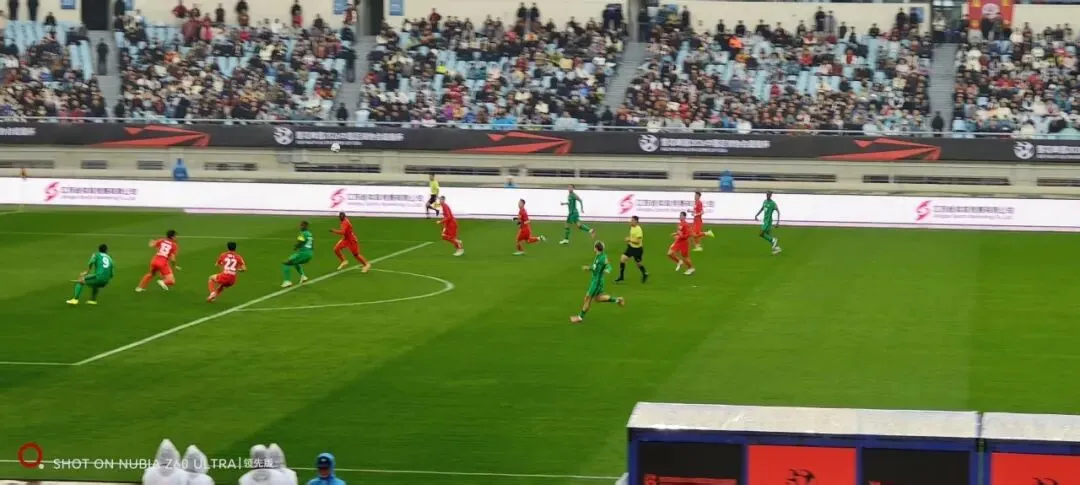 奥体中心的草坪绿得发亮,春日的阳光暖暖地铺下来,看台上已是一片绿色的海洋,对面另一片是红色的海洋。两地来的球迷们挥舞着旗帜,国安球迷那熟悉的绿色让我想起工体的每一个沸腾的夜晚。只是这一次,我们在南京。
