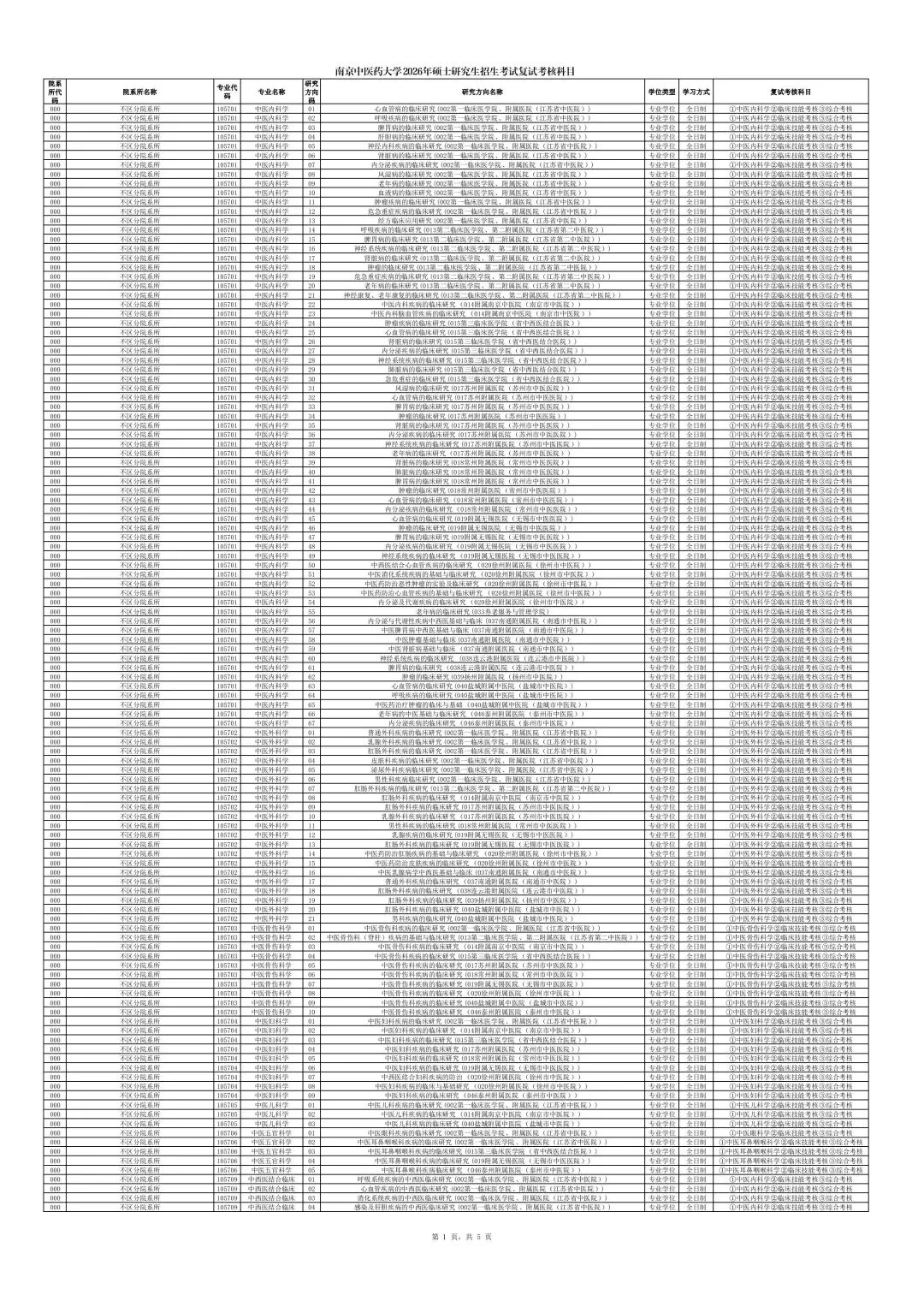 >南京中医药大学2026年硕士研究生招生考试复试考核科目