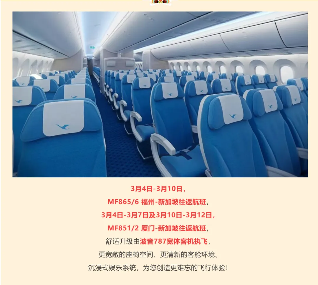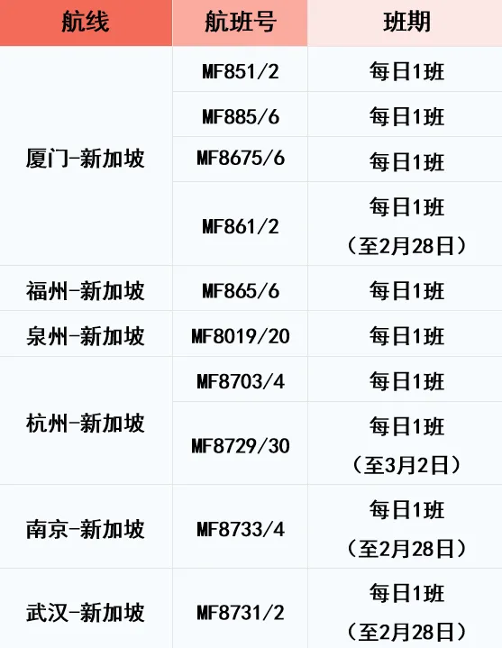 部分福州-新加坡、厦门-新加坡航班,