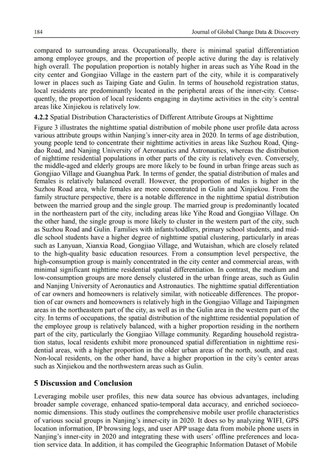 Related Publication:Song, W. X., Xu, D., Wang, J. K., et al. Spatial differentiation of daytime and nighttime society in Nanjing inner city based on cell phone portrait data [J]. Acta Geographica Sinica, 2024, 79(2): 421-438.