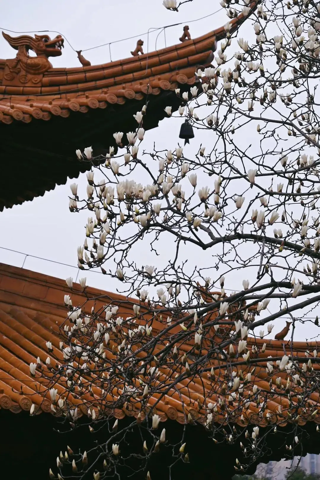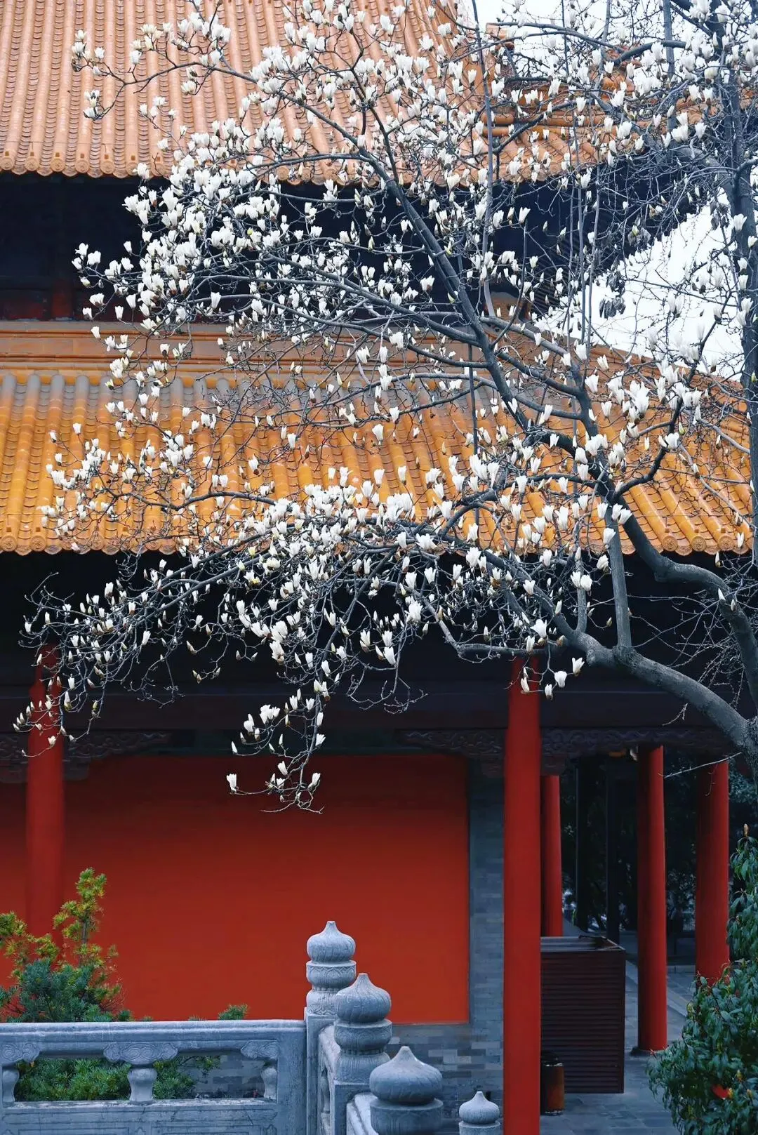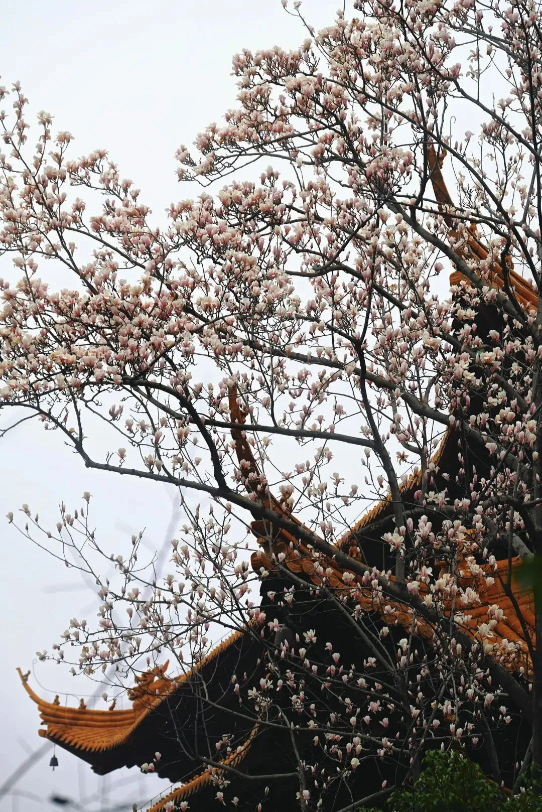 💪雨花台的玉兰品种珍贵,但朝天宫的玉兰胜在 “构图” 。灵谷寺的玉兰是“禅意”,藏在深山里。而朝天宫的玉兰是 “皇气” !这金色琉璃瓦,玉兰配黄瓦,那是真正的“宫廷玉兰”,大气磅礴!