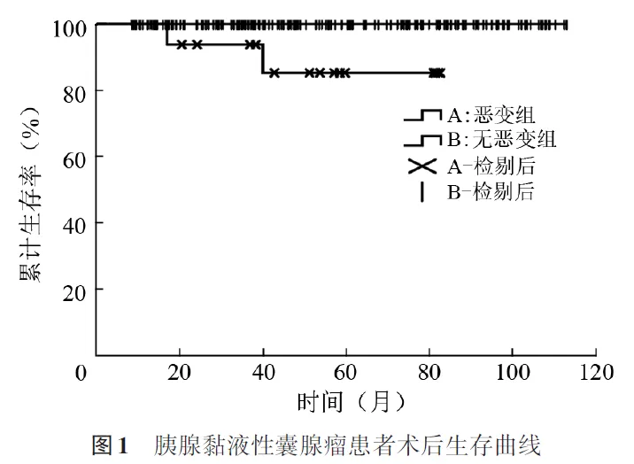 4.病理学特征:将术后病理诊断为黏液性囊腺癌、MCN伴相关浸润性癌或MCN伴高级别异型增生者归为恶变组,其余归为无恶变组。