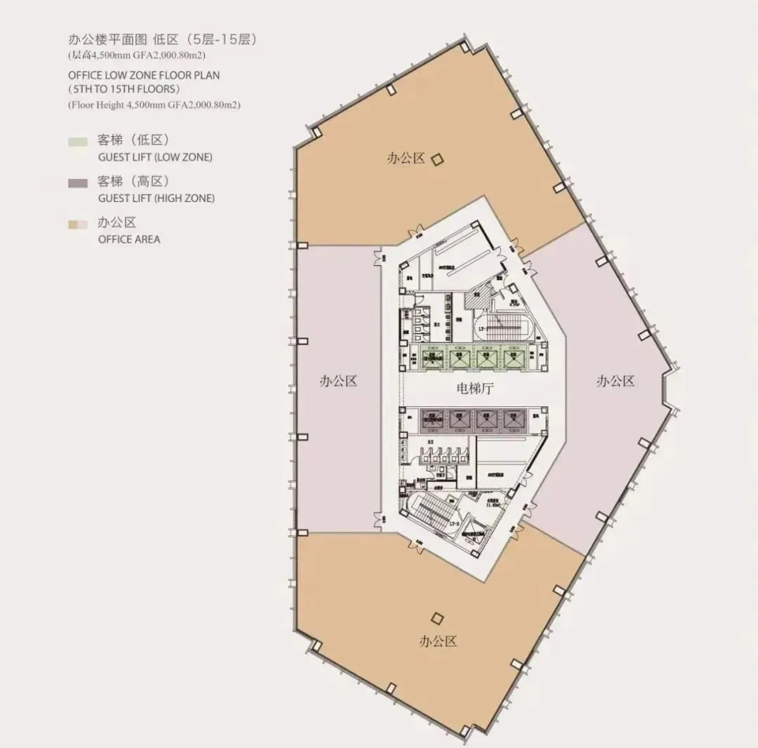 办公面积:约36189.02㎡(5~23层)
