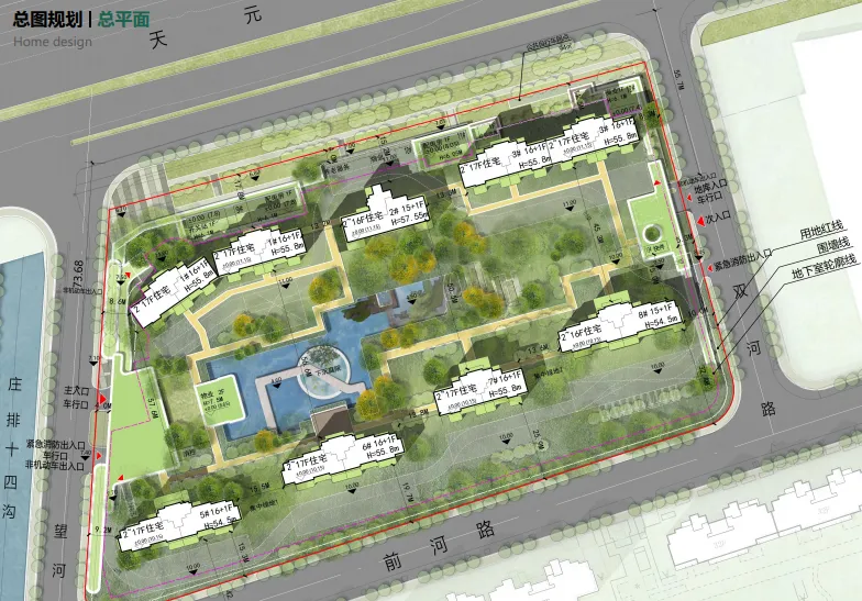 玻璃材质反射比控制在0.16以下,实现景观视野与居住私密性的平衡。建筑布局采用南偏东15°错位排布,既优化日照时数,又强化了户内空间与外部河景的视觉联动。