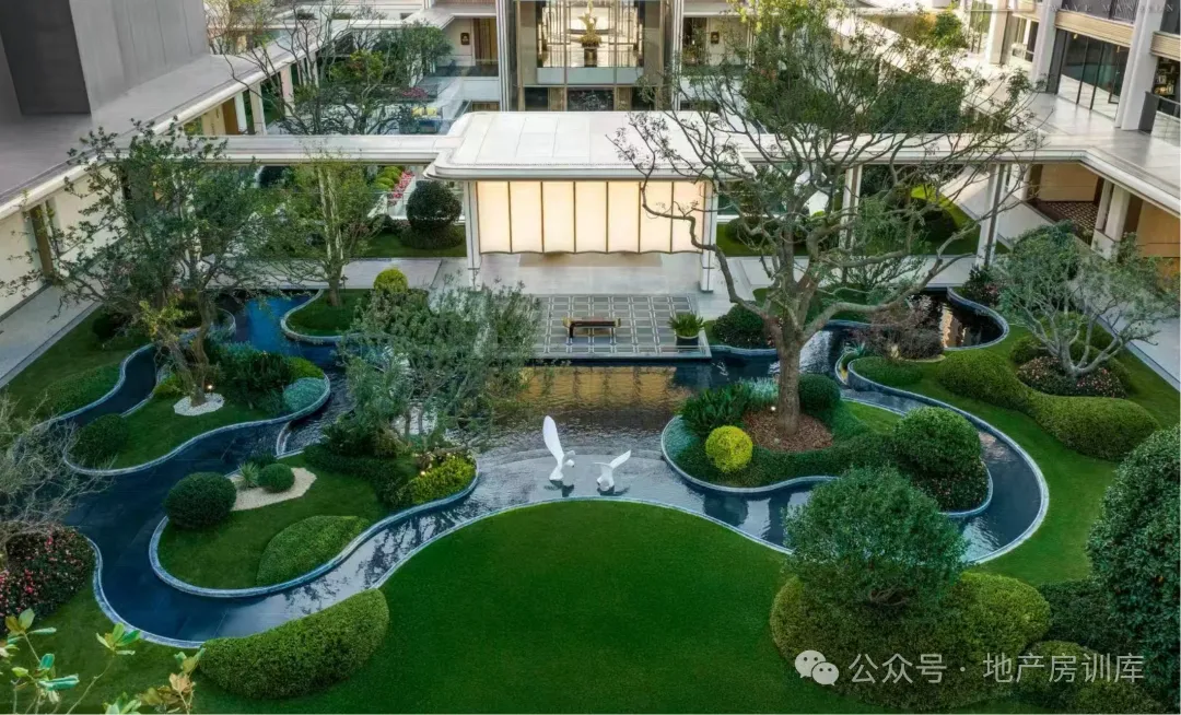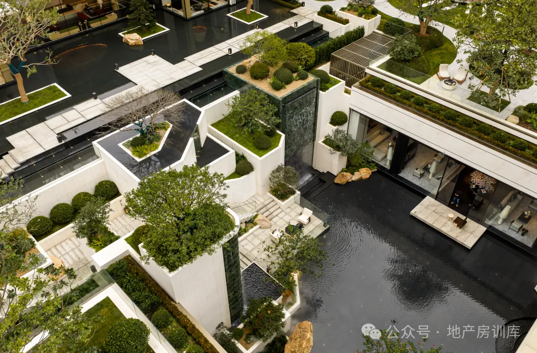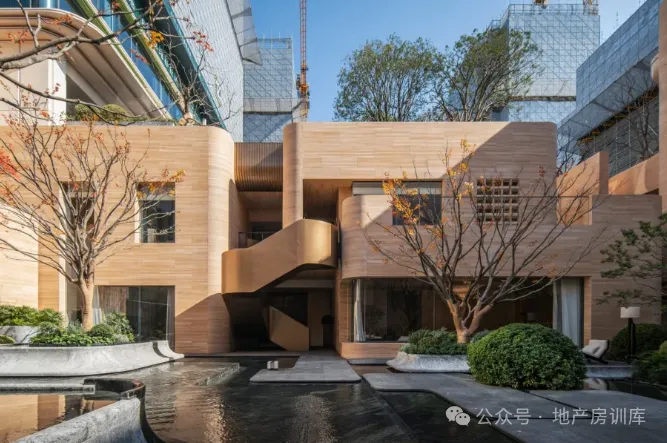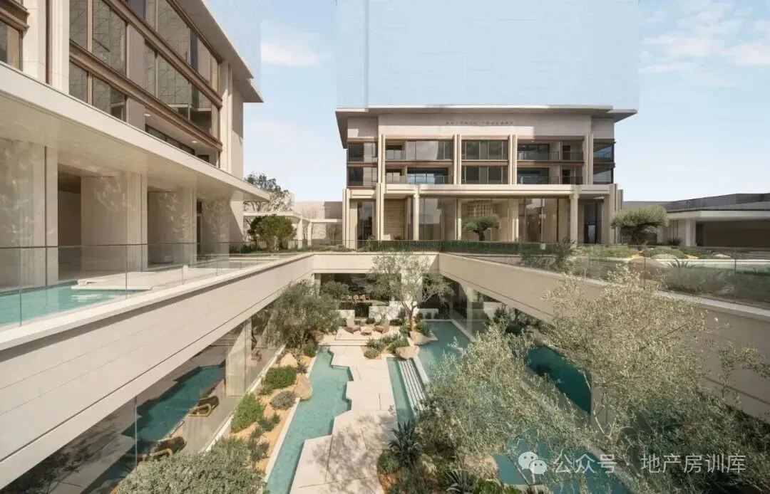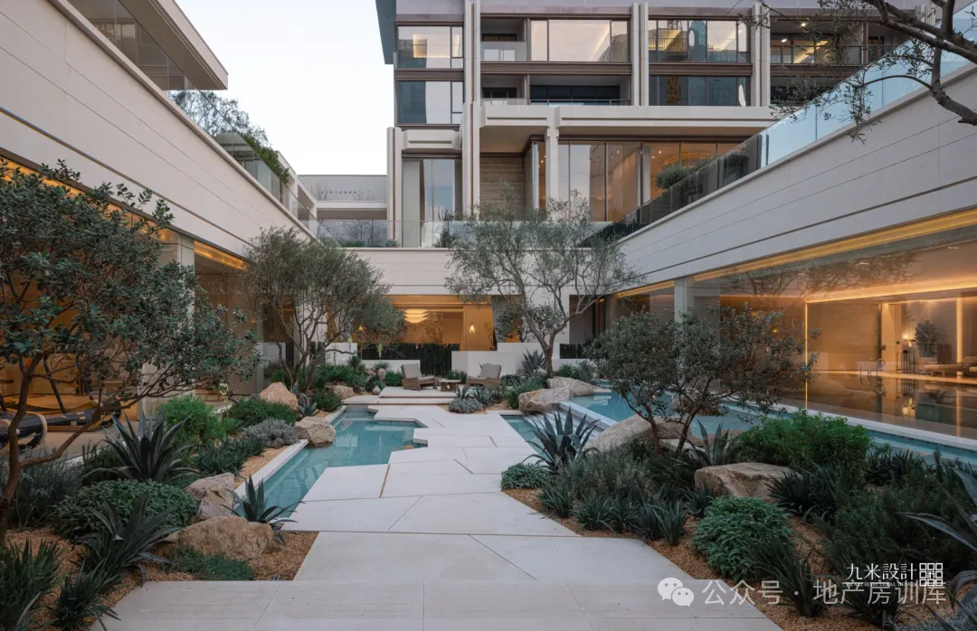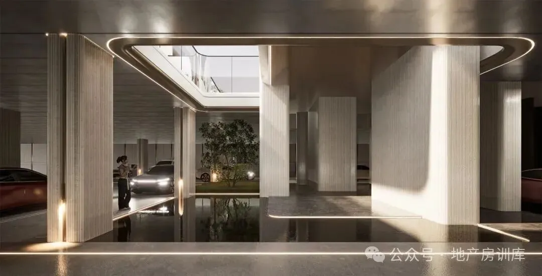 特别值得一提的是其对“地下空间”的革命性改造。除了阳光车库,被整体抬升的底盘之下,形成了连通庭院、充满自然呼吸感的社交与景观灰空间,北京顺景园林将其定义为“流域会所”。