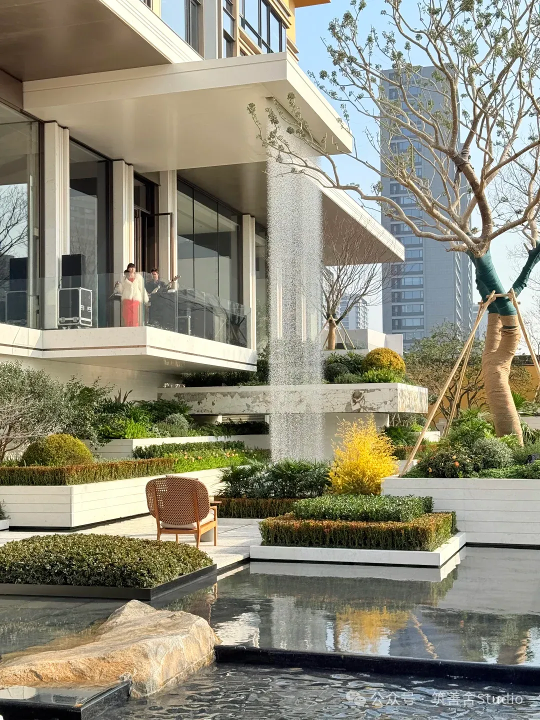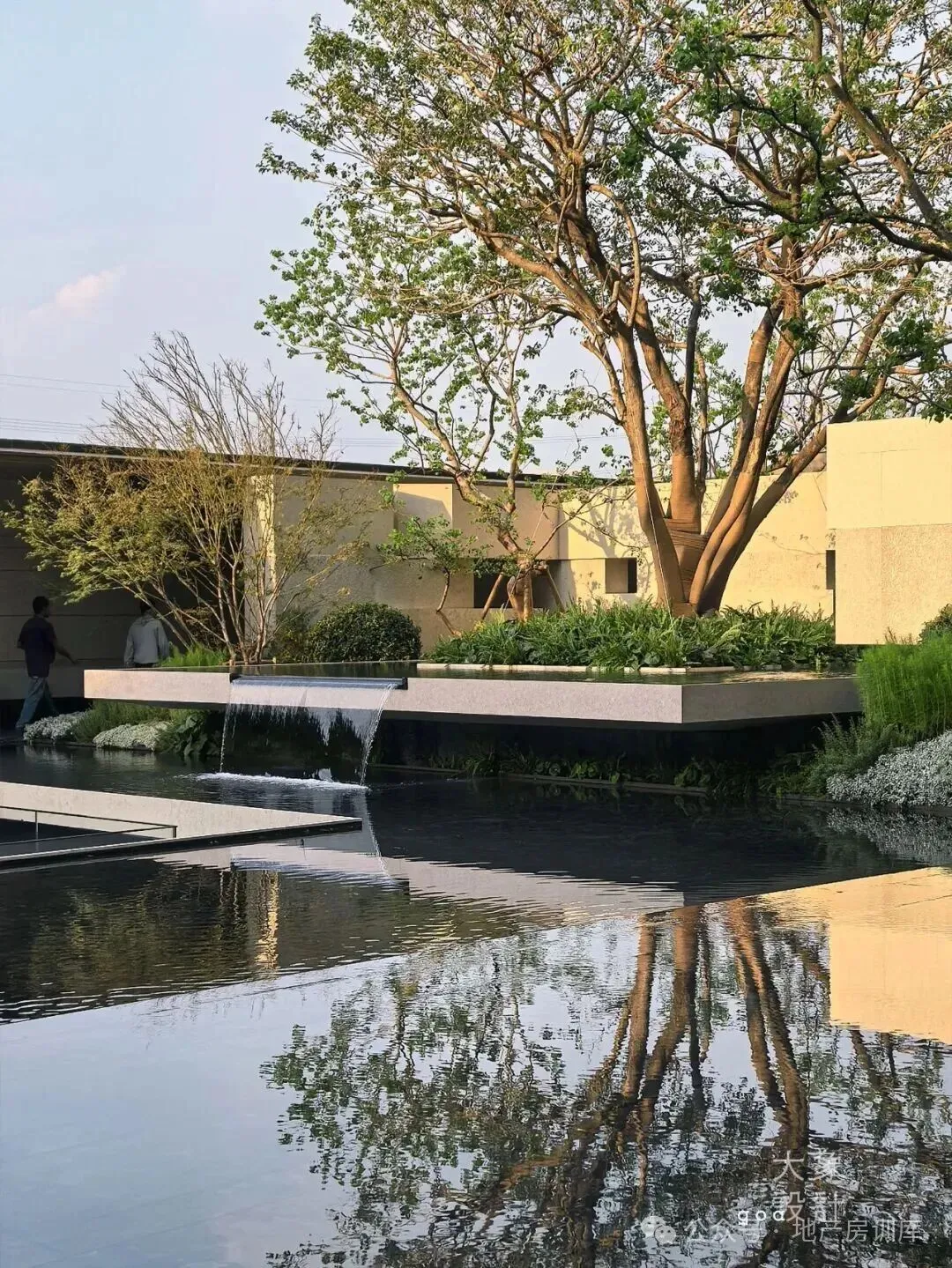 它曲水流觞,绕园而行,直至落差约12米的三层下沉式庭院,化作层层跌落的瀑布,刚柔并济,气象万千。