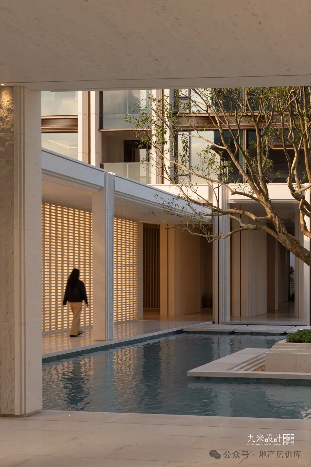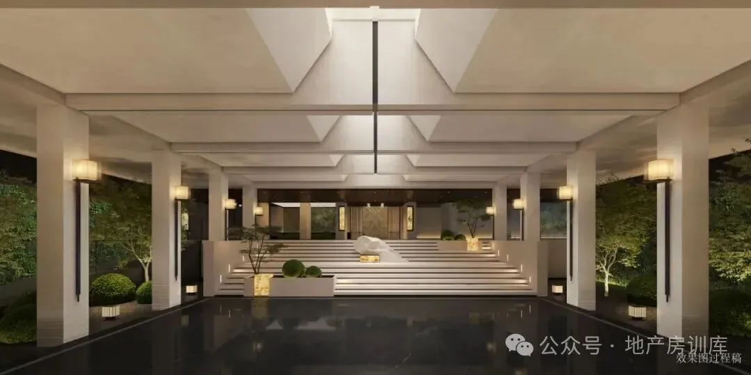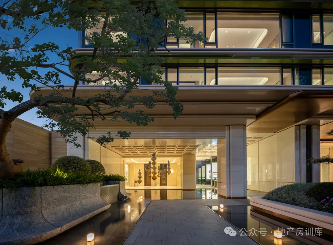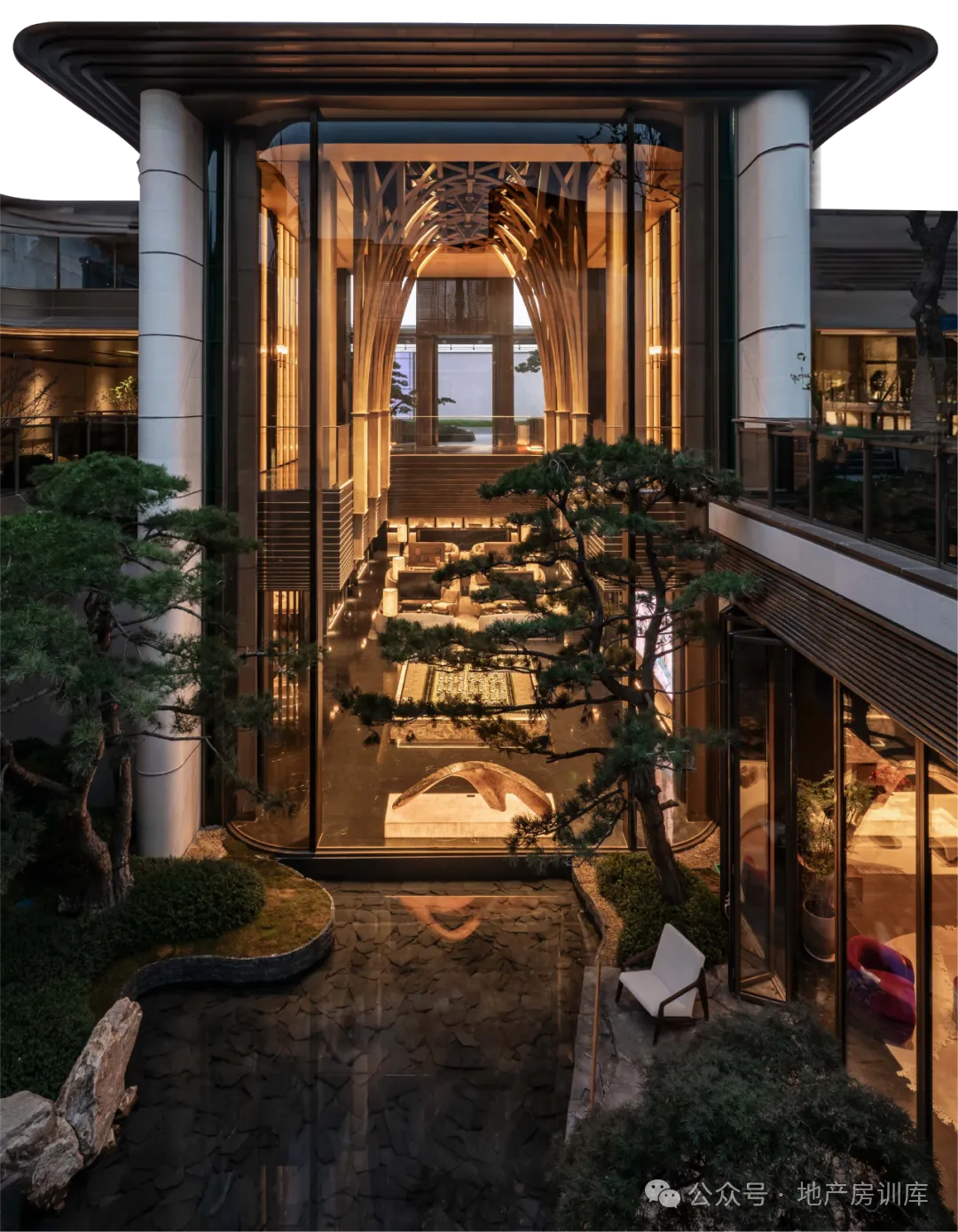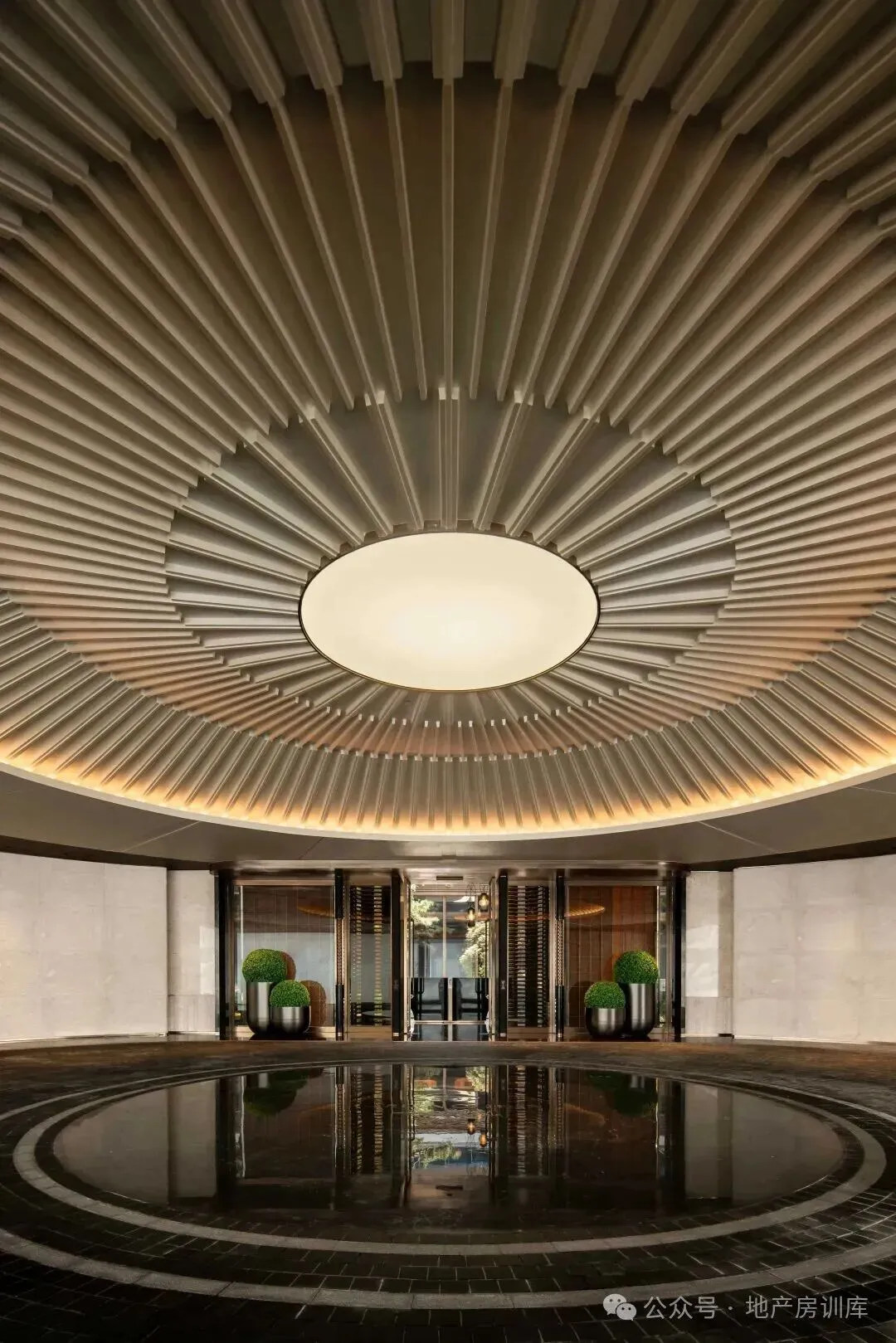 归家仪式从高约8.8米的艺术府门开始,经由“中央车站”般的归家大堂礼序,再通过栋栋架空的首层花园,最终抵达私属单元。这一系列空间,不仅提供功能服务,更在反复塑造一种宁静、尊崇且具有艺术美感的归心旅程。