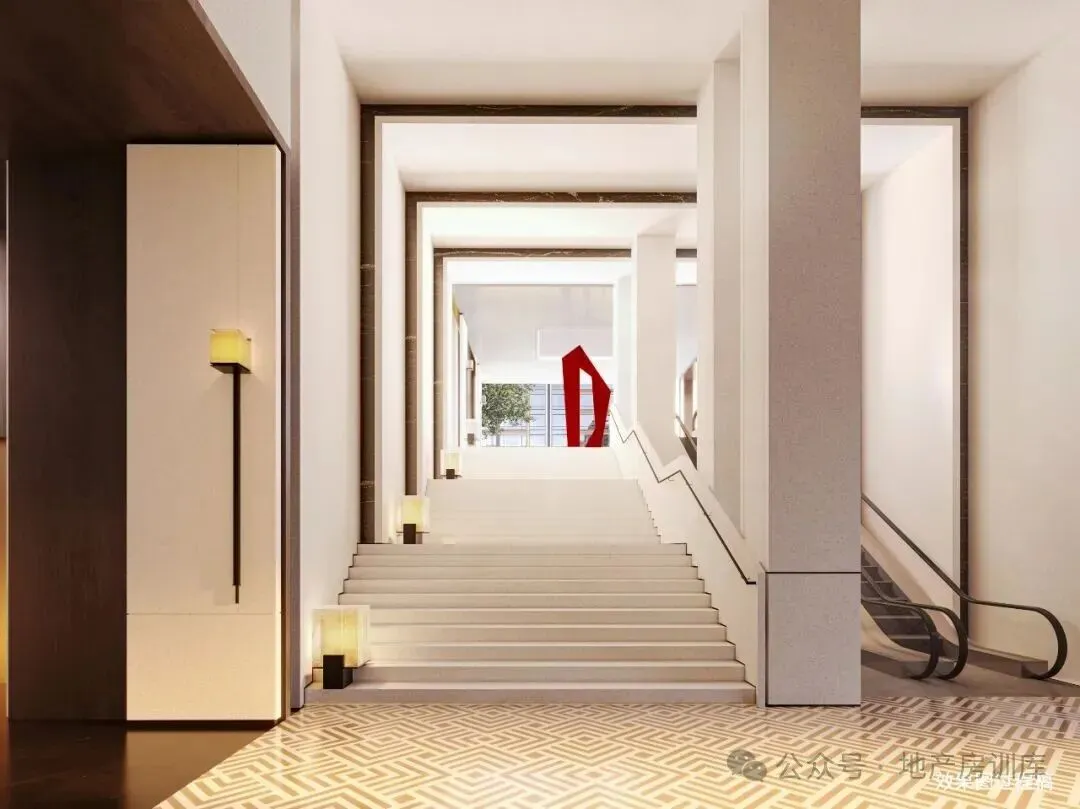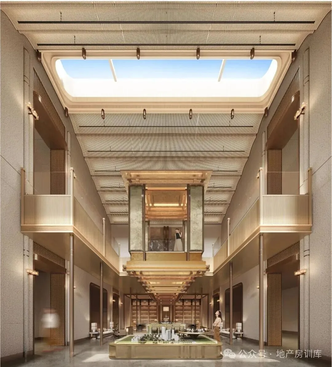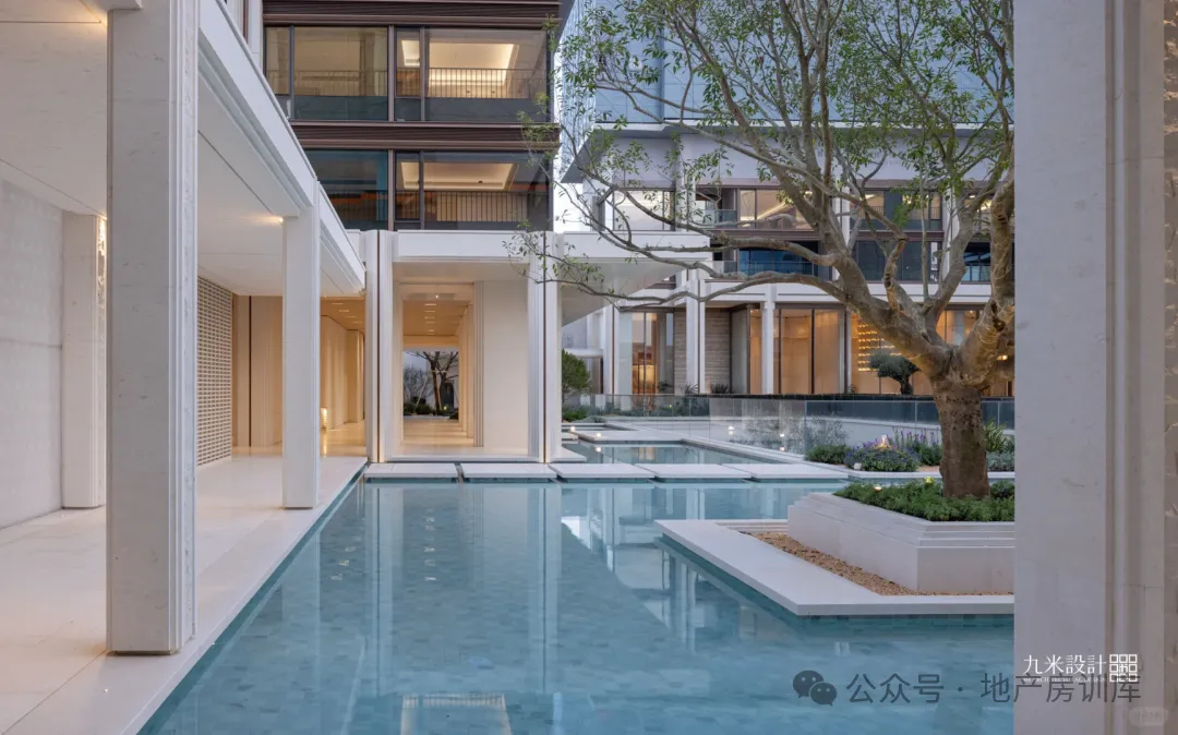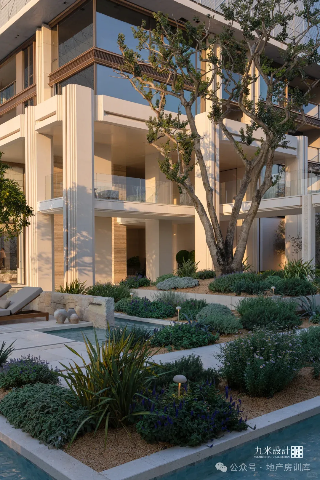 归家仪式从高约8.8米的艺术府门开始,经由“中央车站”般的归家大堂礼序,再通过栋栋架空的首层花园,最终抵达私属单元。这一系列空间,不仅提供功能服务,更在反复塑造一种宁静、尊崇且具有艺术美感的归心旅程。