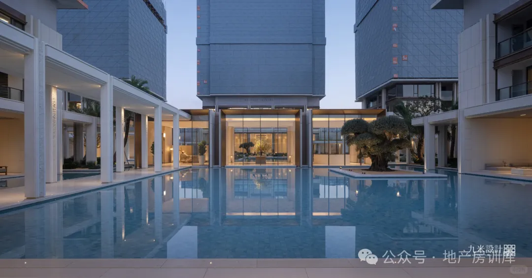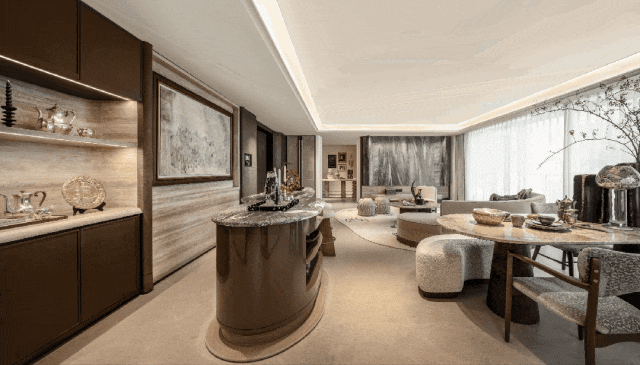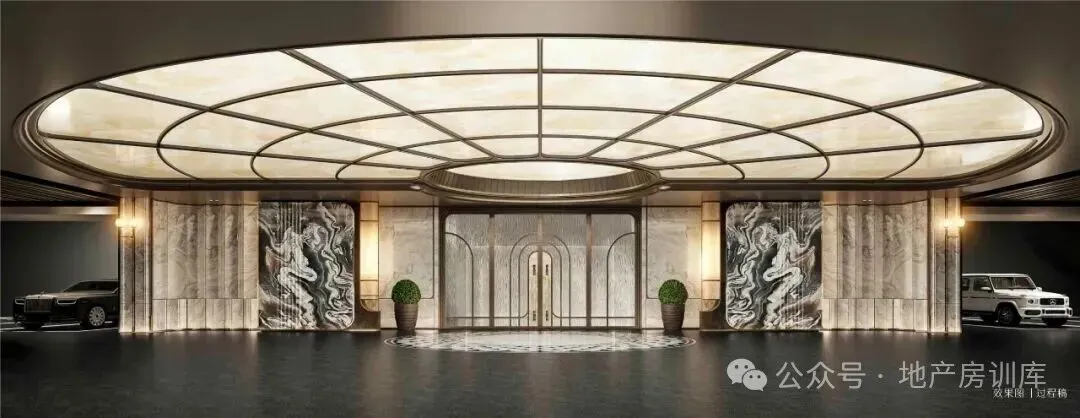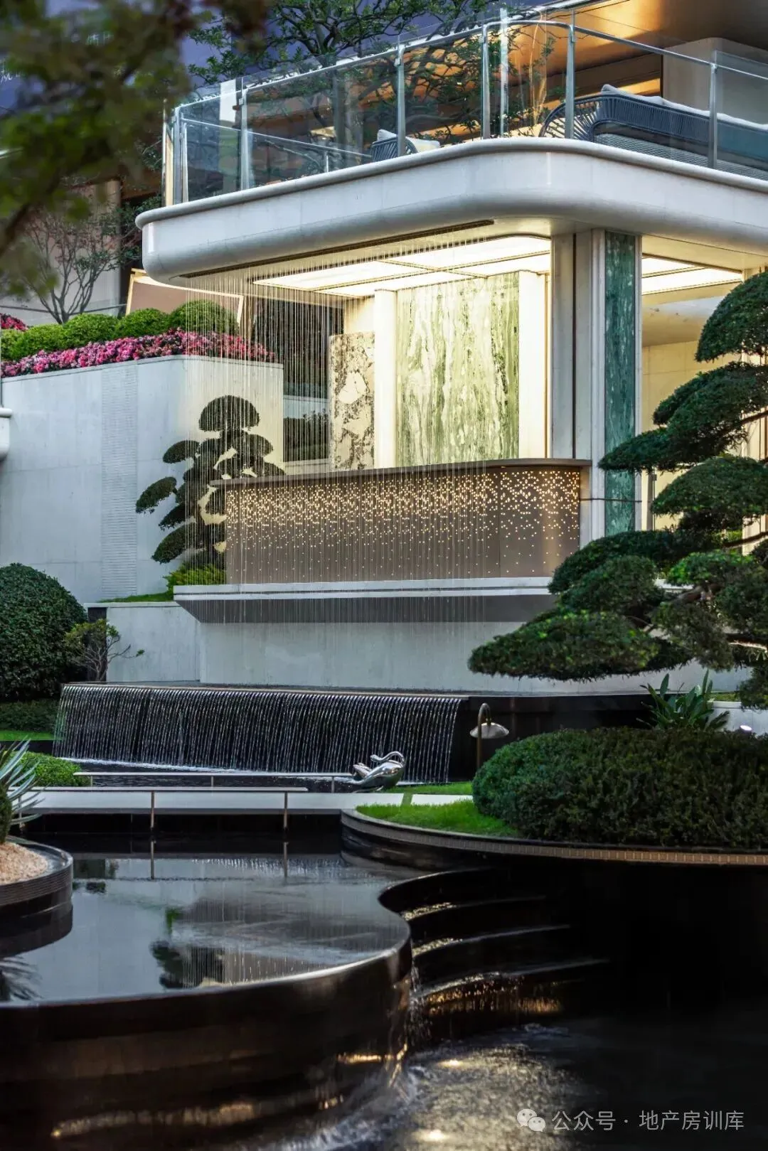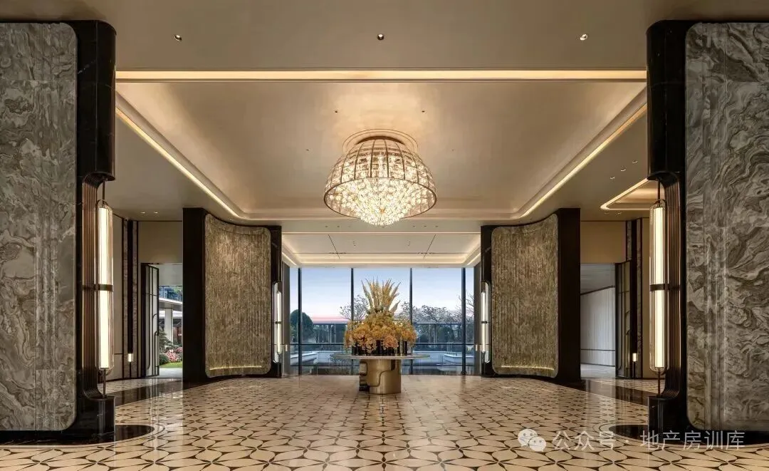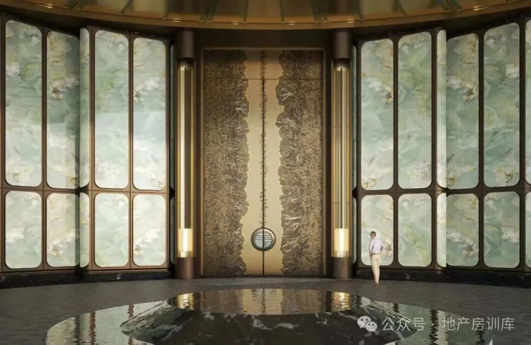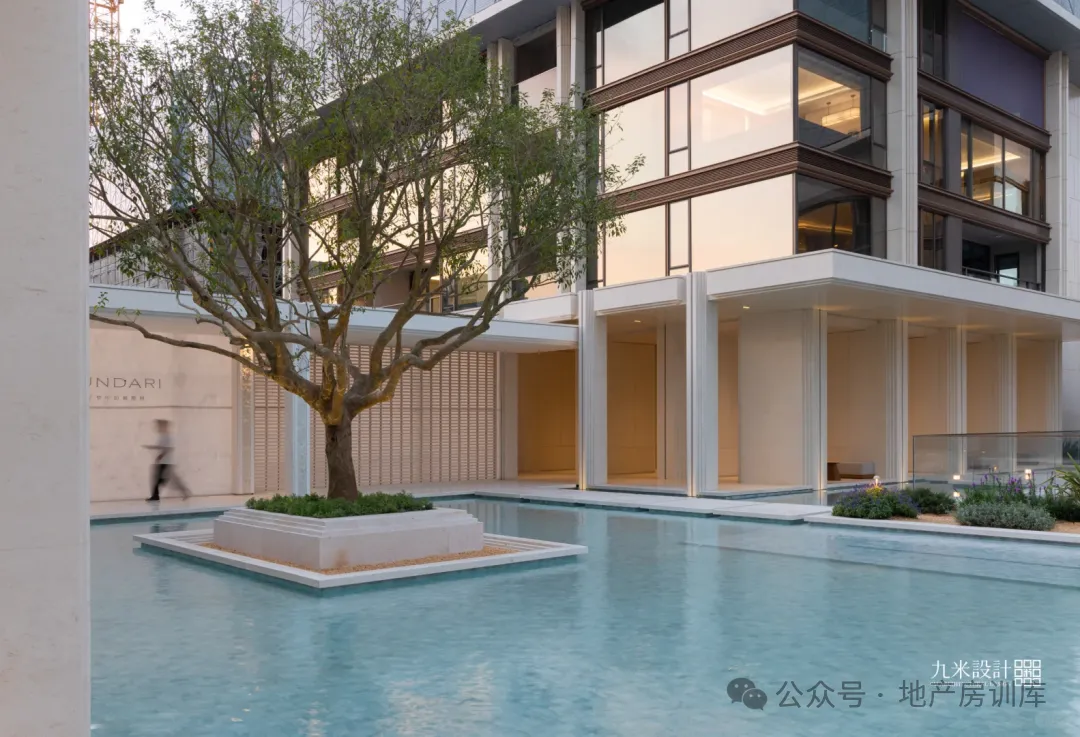 归家仪式从高约8.8米的艺术府门开始,经由“中央车站”般的归家大堂礼序,再通过栋栋架空的首层花园,最终抵达私属单元。这一系列空间,不仅提供功能服务,更在反复塑造一种宁静、尊崇且具有艺术美感的归心旅程。