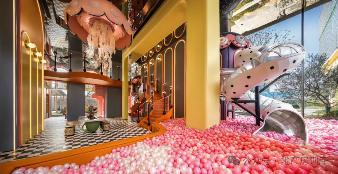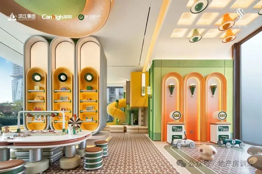 作为新规后的项目,咏舟府不仅做到了全架空,功能性也非常丰富,打造了2个童玩主题,还有专门的老年主题,女性主题等功能空间,在6幢的架空层里更有专门的labubu主题轰趴馆空间,搭配抬升设计特有的城市阳台空间。