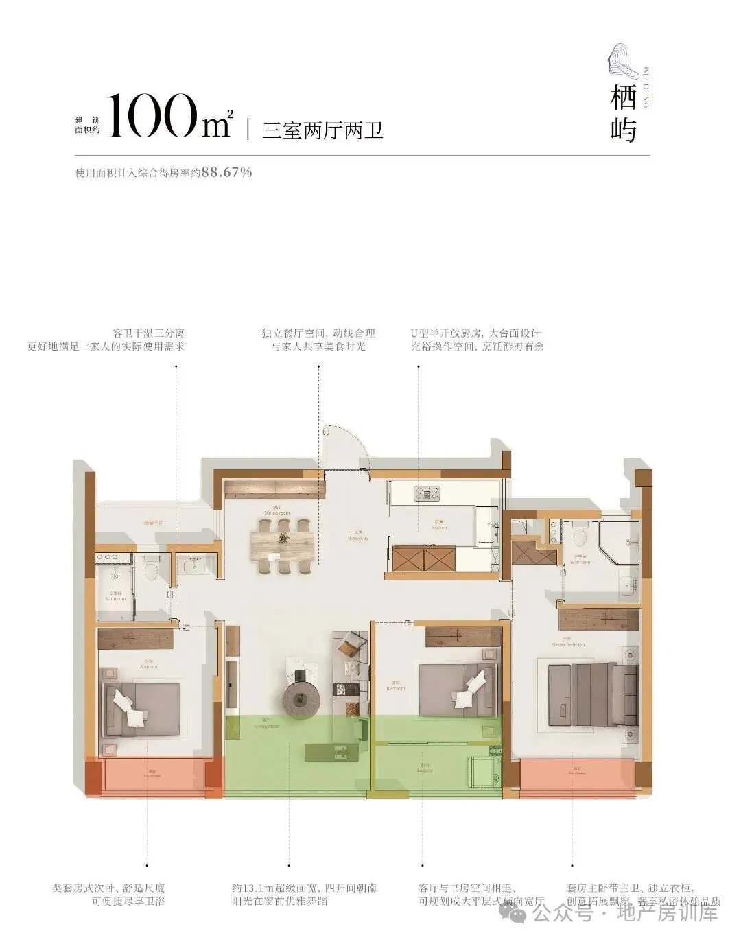 同时,户型设计全面吃透新规红利,下叠得房率接近100%,中叠和上叠均在100%以上。