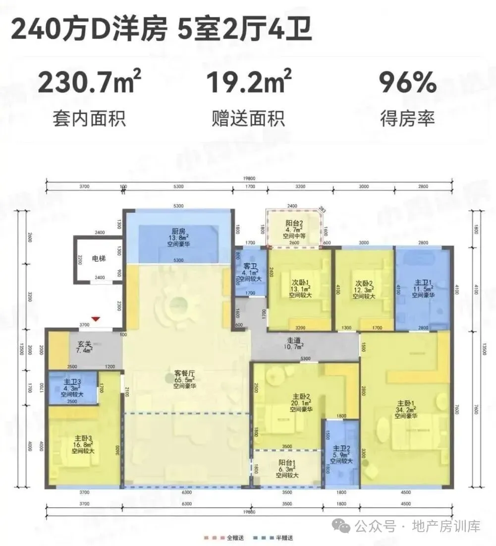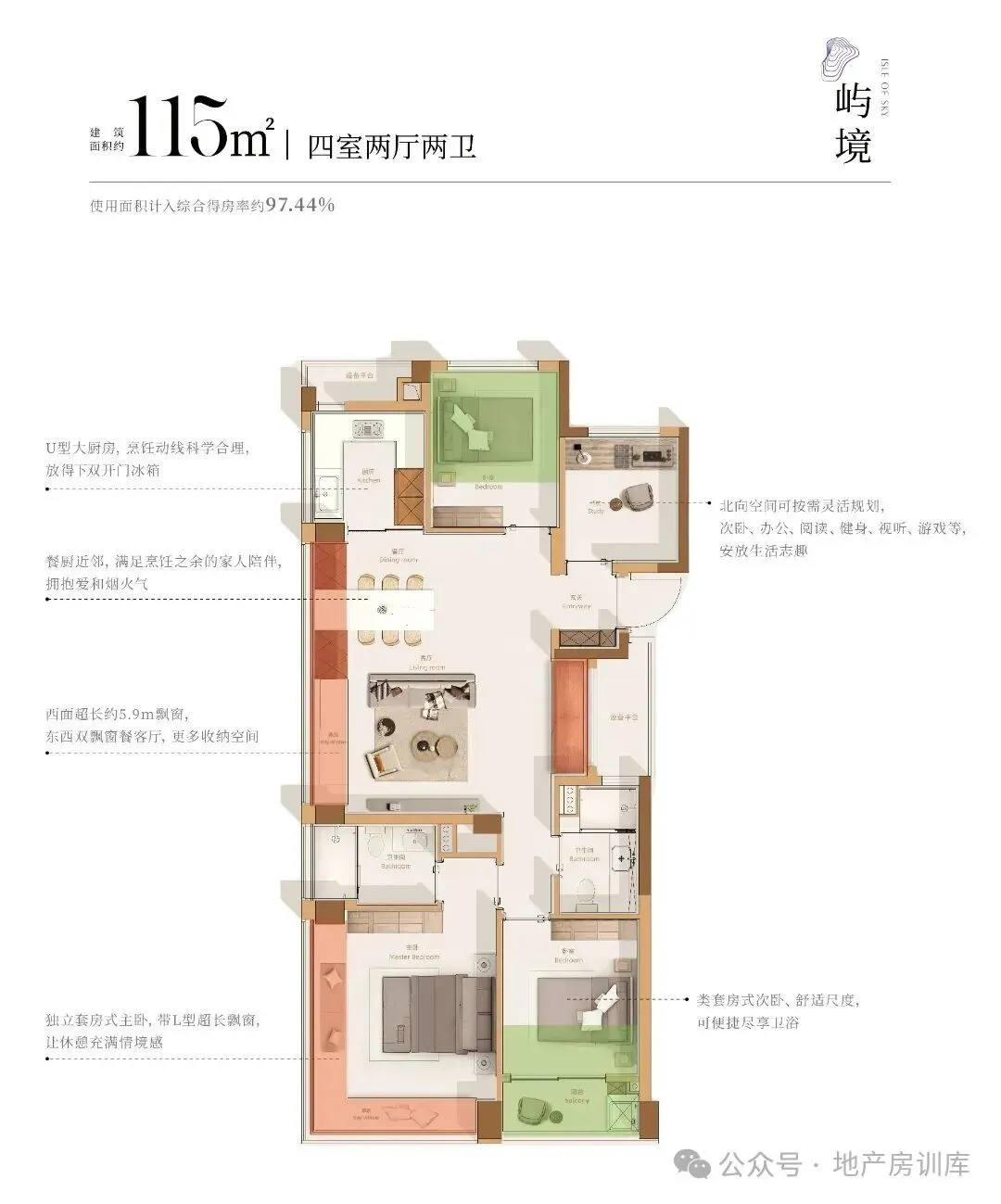 大量赠送面积的拓展,使其拥有约97.44%的超高得房率,堪比市场面主流约150㎡+户型的实用空间。
