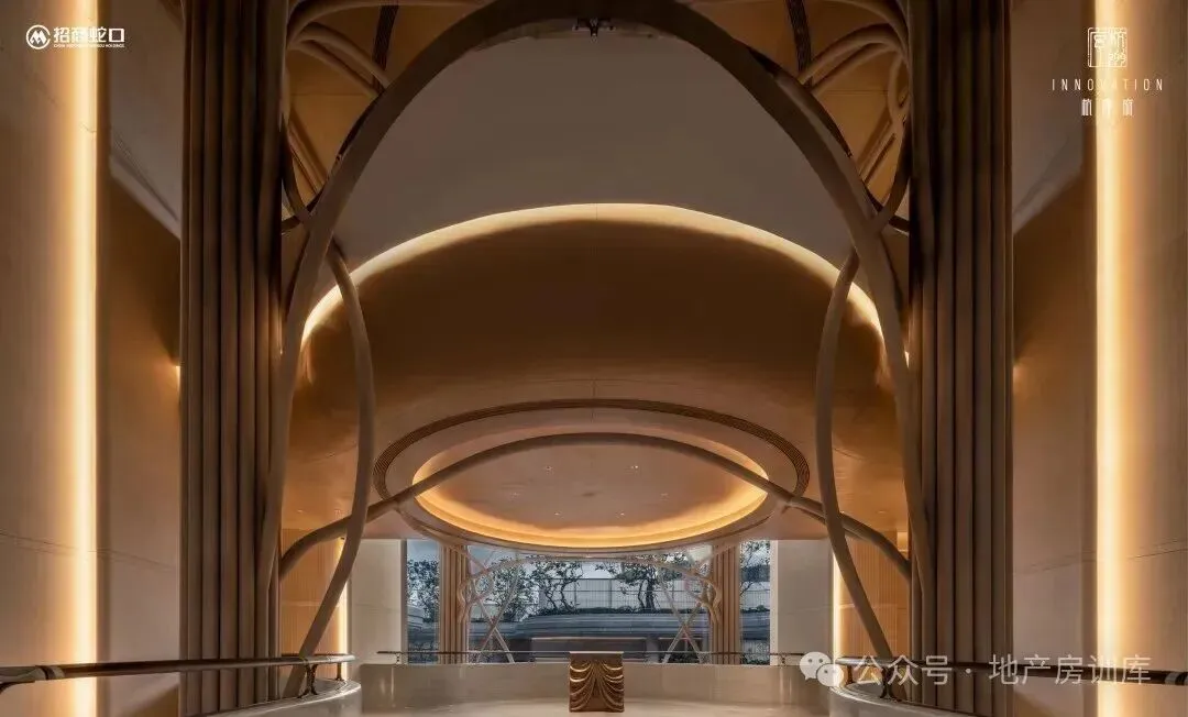 建筑结构上,项目结合在地文化匠造杭派美学住宅。比如,接待厅的斗拱同源六和塔宋式斗拱,尽显“天地四方”和合的贵胄感与强烈的场域感。