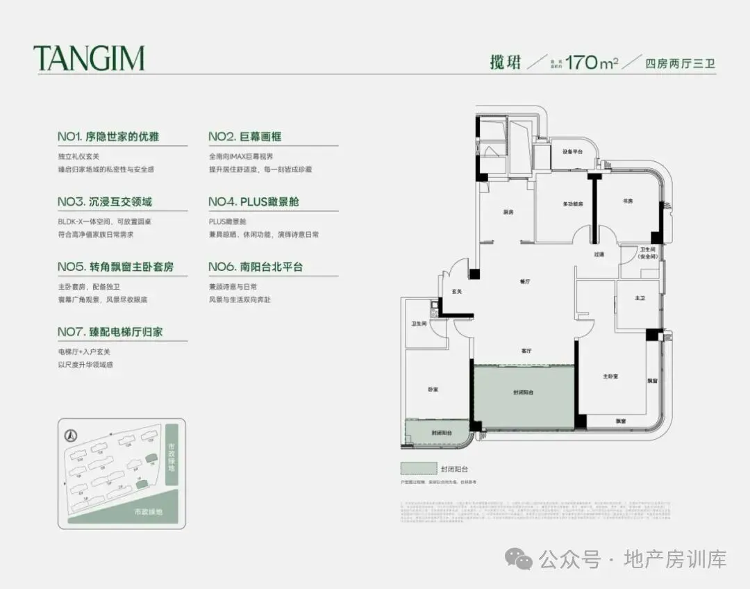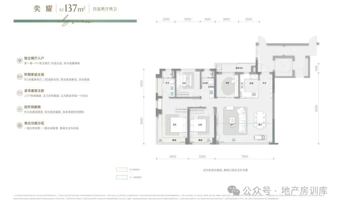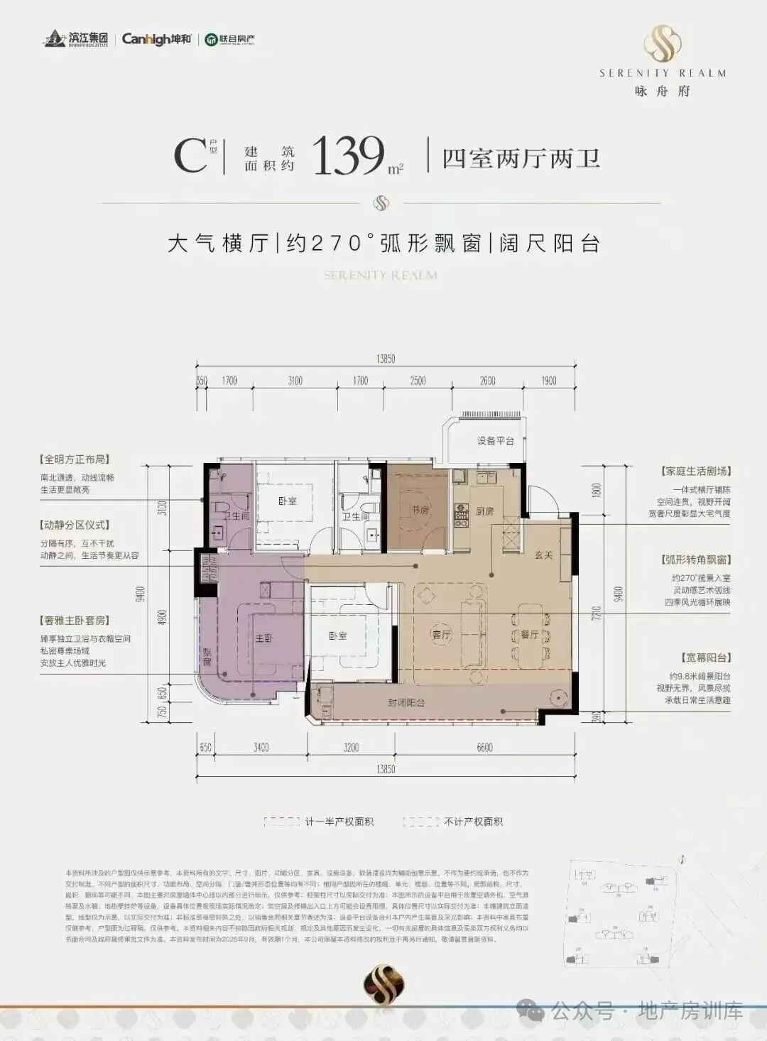 项目打造建面约123-173㎡的主力户型。该项目在户型打造上也有诸多突破,如建筑面积约139㎡户型采用约6.8米全景横厅,采光极佳;约21㎡主卧带步入式衣帽间,搭配270°转角飘窗,更奢华明亮;双洄游动线体系既保证隐私又创造多元互动场景。