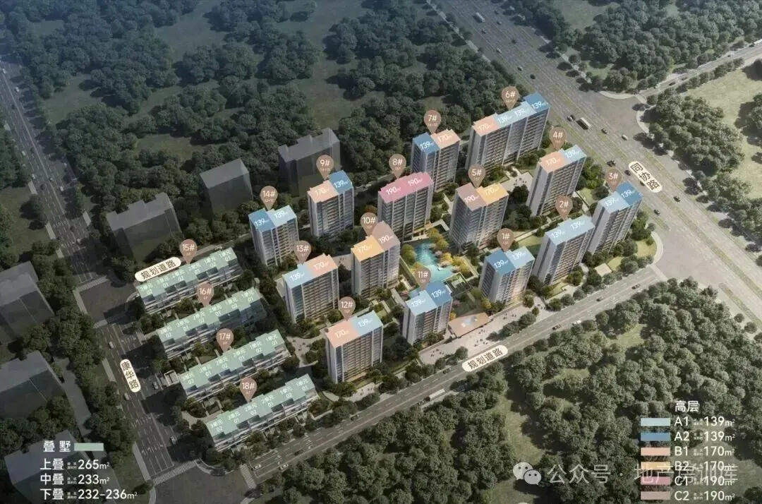 户型:高层建筑面积约225㎡、270㎡;叠墅主力建筑面积约260㎡、360㎡