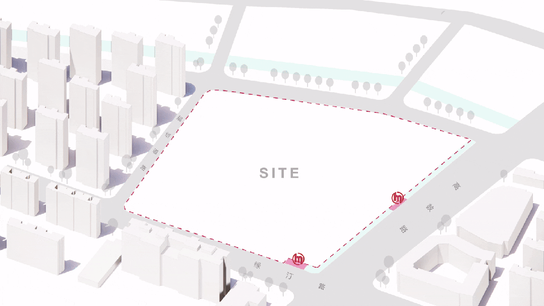 通过解读“架空车库不计容”的政策条件,项目将沿街空间整体抬高,策略性地植入配套功能与车库系统。这一设计处理使抬升的基座成为城市与社区之间一道柔和的过渡界面,有效隔绝了车行干扰与视觉穿行,保障了社区内部的私密性与安宁,又使商业配套与街道活动紧密衔接,延续了城市街区的烟火气与活力。