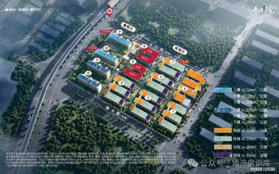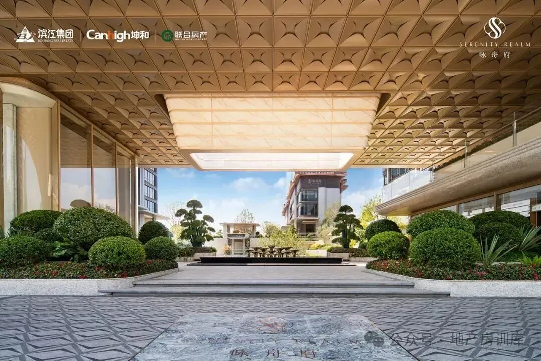 项目以局部抬板设计,塑造约9米高差错落的台地花园,让景观不再是平面的“图画”,不仅好看,而且是可步入、可沉浸的立体场域。示范区开放后,它便一跃成为楼市“大热”,两周吸引了超2600组客户。高层标准层高约3.1米+架空层约5-8米(楼王架空层高约8米),地下还打造了板块首个地下车马厅。公共空间的尺度,直追杭州一线豪宅。建面约139㎡户型起步,高层户型最大建面约190㎡,类一梯一户,还有4幢叠墅(建面约232-265㎡)。