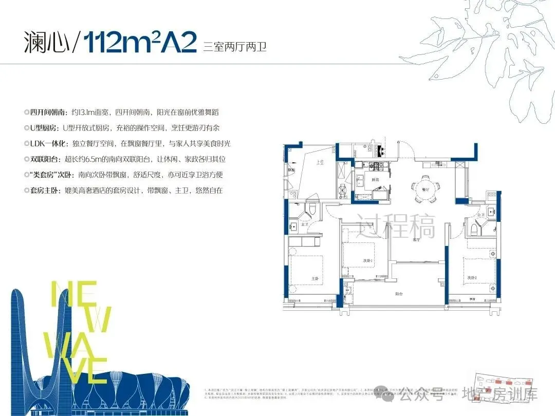 项目打造建面约100-175㎡奢适户型。所有户型均遵循“南向最大化+灵活空间”原则,南向面宽最大达15米,部分户型配备270°环幕观景阳台。