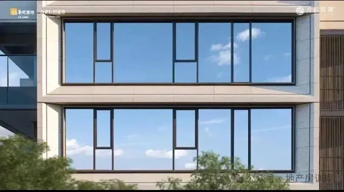作为板块内首个四面铝板外立面项目,高层外立面选用仿石铝板搭配茶金色Low-E玻璃,整体形象简洁高级,历久弥新。