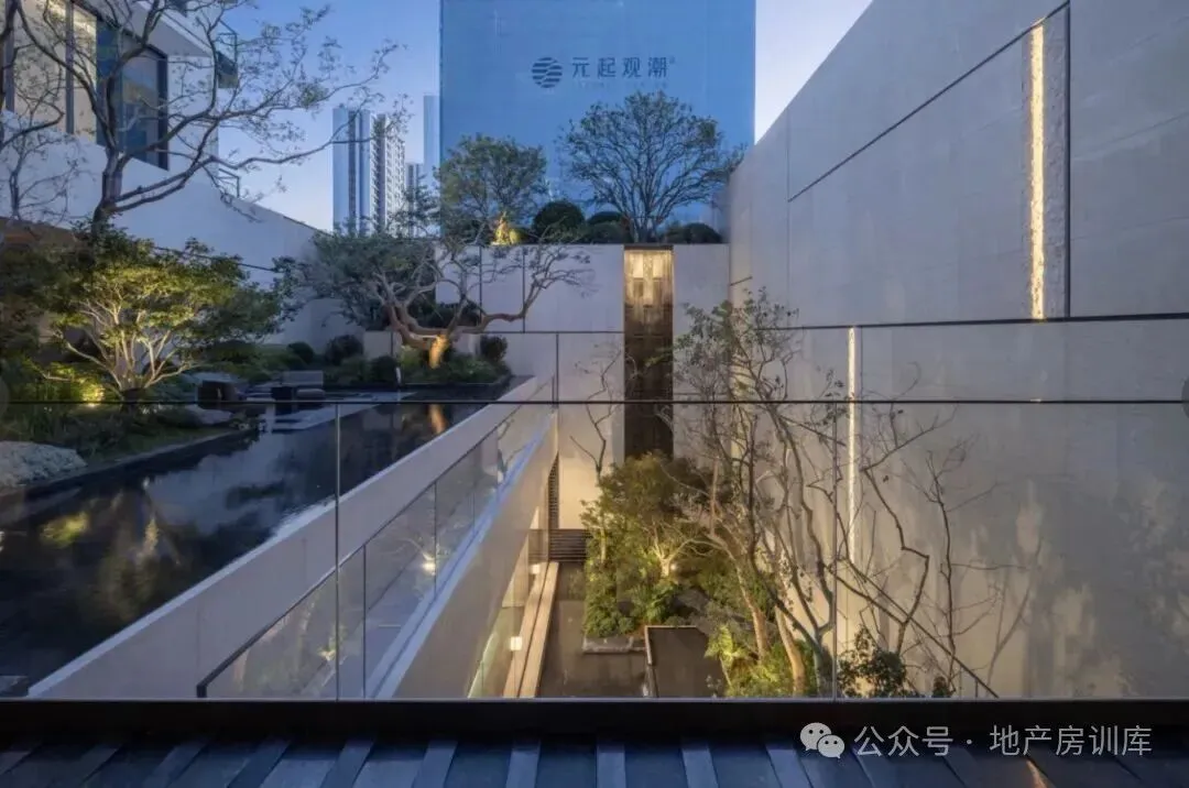 由于首层抬高的设计,元起观潮园区相当于普通小区3楼的高度,更具私密性和立体感。
