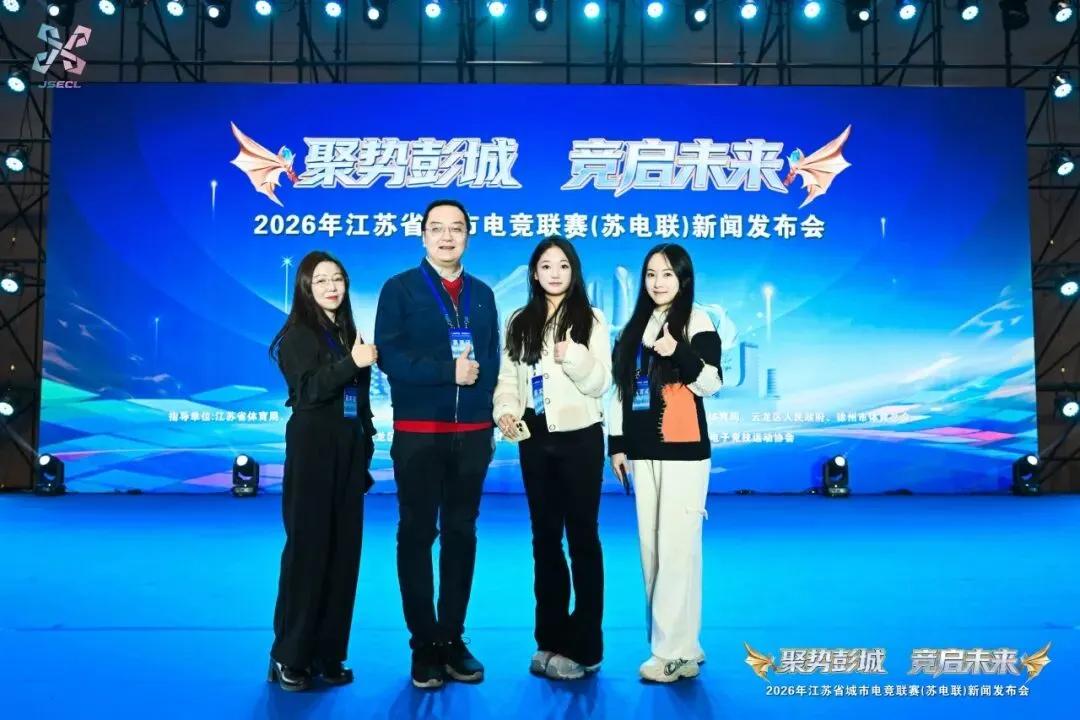 2026年2月28日,2026江苏省城市电竞联赛(简称“电竞苏超”)新闻发布会在徐州淮海国际博览中心隆重举行。南京传媒学院电竞学院作为省内高校代表及联赛重要合作伙伴,深度参与了本次联赛的视觉体系设计与人才孵化战略。在后续联赛中,学院师生也将参与联赛的赛事配套衍生品设计、赛事执行、赛事解说等核心环节,将课堂所学应用于实战。