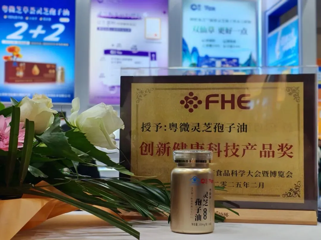 本次盛会,粤微芝草荟携明星产品灵芝孢子油软胶囊、灵芝淫羊藿丹参胶囊、藏雪芝全灵芝孢子粉,舒酸平蛹虫草海洋鱼低聚肽饮品,灵芝猴头菇野樱莓益生菌粉等等一系列重磅科研转化成果,凭借卓越品质与创新配方,赢得参会嘉宾的高度认可。