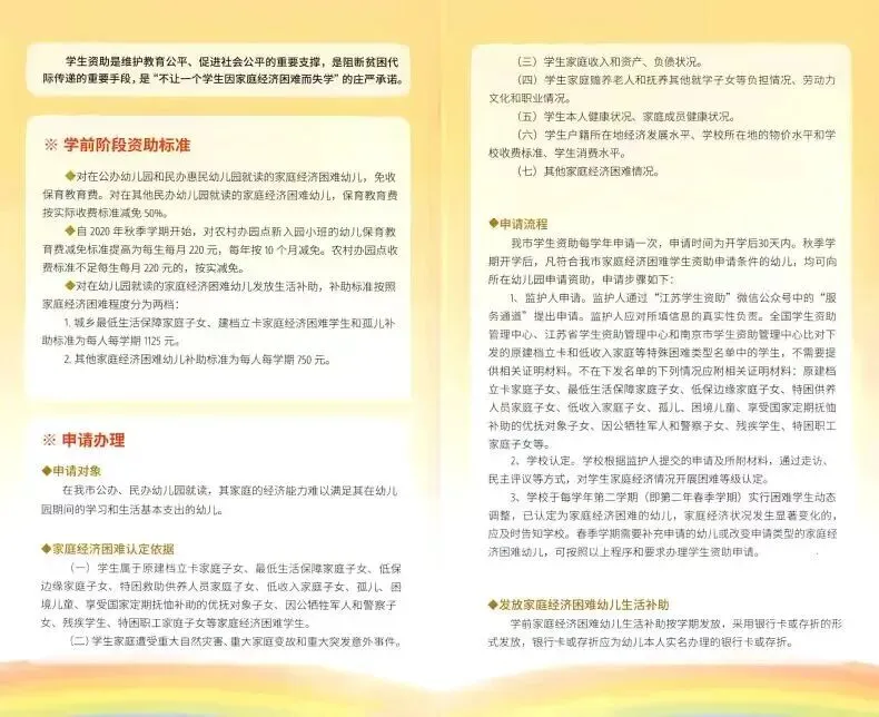 温情呵护 阳光助学———南京市学前教育家庭经济困难幼儿2026年春季学期资助申请工作