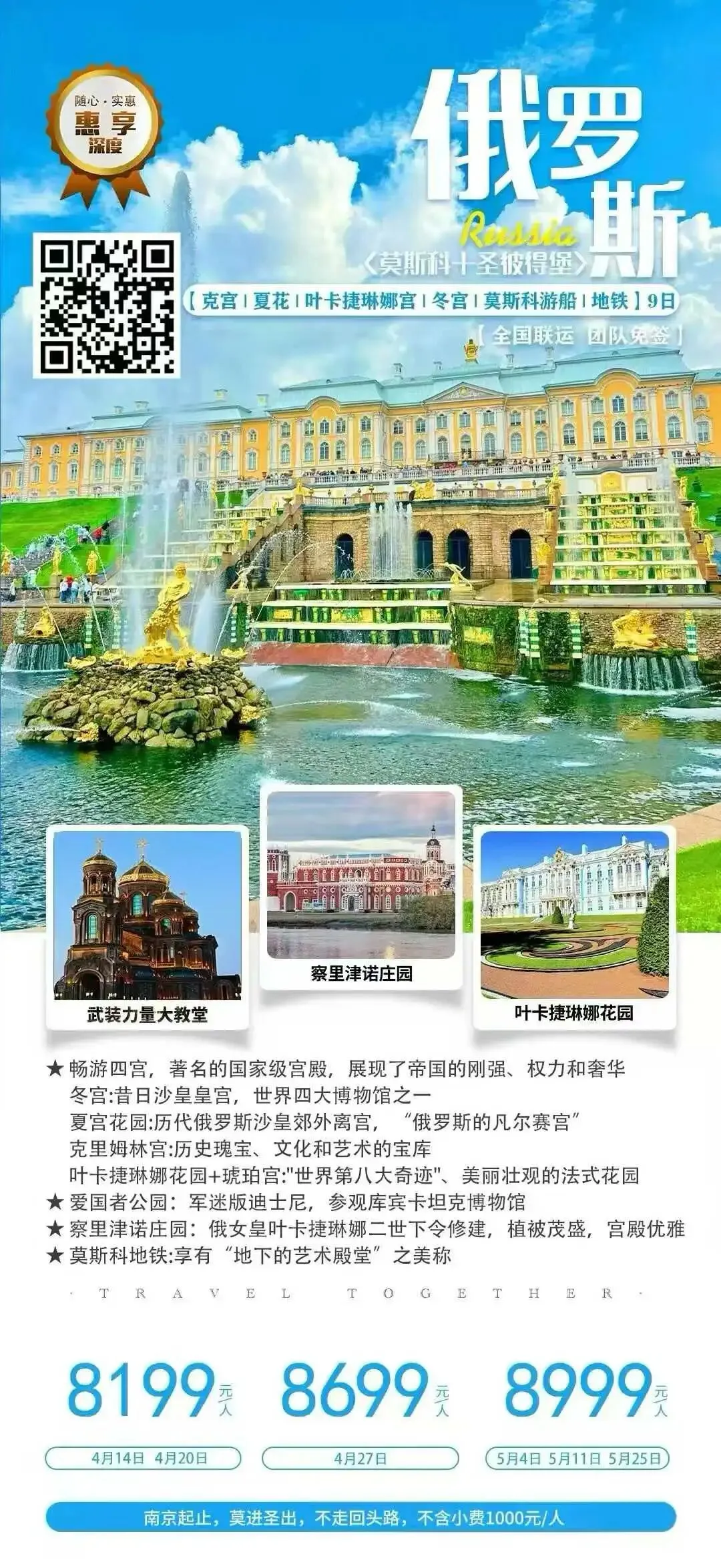 2026俄罗斯9日之旅,一价全含,免签