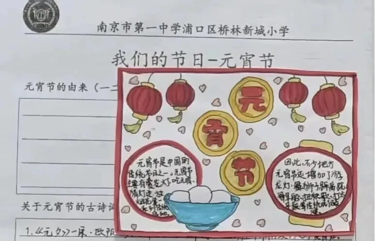 元宵佳节,承载着团圆美满的美好寓意,也蕴含着中华民俗的深厚底蕴。为让少先队员在浓郁的节日氛围中感受传统文化的魅力,体验民俗活动的乐趣,南京市第一中学浦口区桥林新城小学以“元宵花灯映笑脸 传统文化润童心”为主题,开展了元宵节系列实践活动,让孩子们在探究中知由来、在诗词中品古韵、在巧手中创佳作、在团圆中品温情,让传统节日焕发新彩,让文化根脉代代相传。