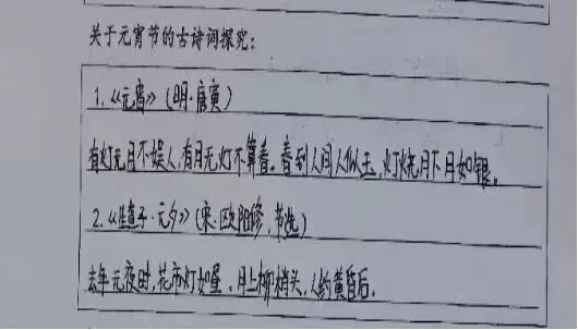 “去年元夜时,花市灯如昼。”一首首脍炙人口的元宵诗词,将孩子们带入千年前的灯火阑珊处。他们在诗词的海洋中徜徉,感受古人对元宵佳节的深情咏叹,体会那份团圆与思念交织的情感。