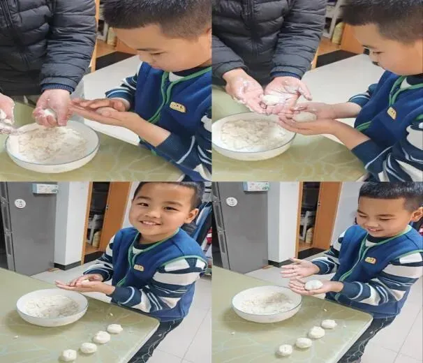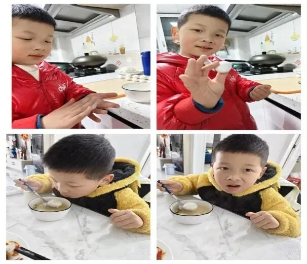 “糯米粉加温水,揉成面团……”在家长的陪伴下,孩子们亲手制作元宵,体验传统美食的制作过程。从揉面到包馅,再到搓圆下锅,每一个动作都认真专注,每一颗元宵都包裹着童真与心意。当热气腾腾的元宵端上餐桌,和家人围坐在一起品尝的那一刻,甜蜜的不只是汤圆,更是团圆的幸福与家的温暖。孩子们在劳动中感受年味,在陪伴中体会亲情,让传统文化在烟火气中代代相传。