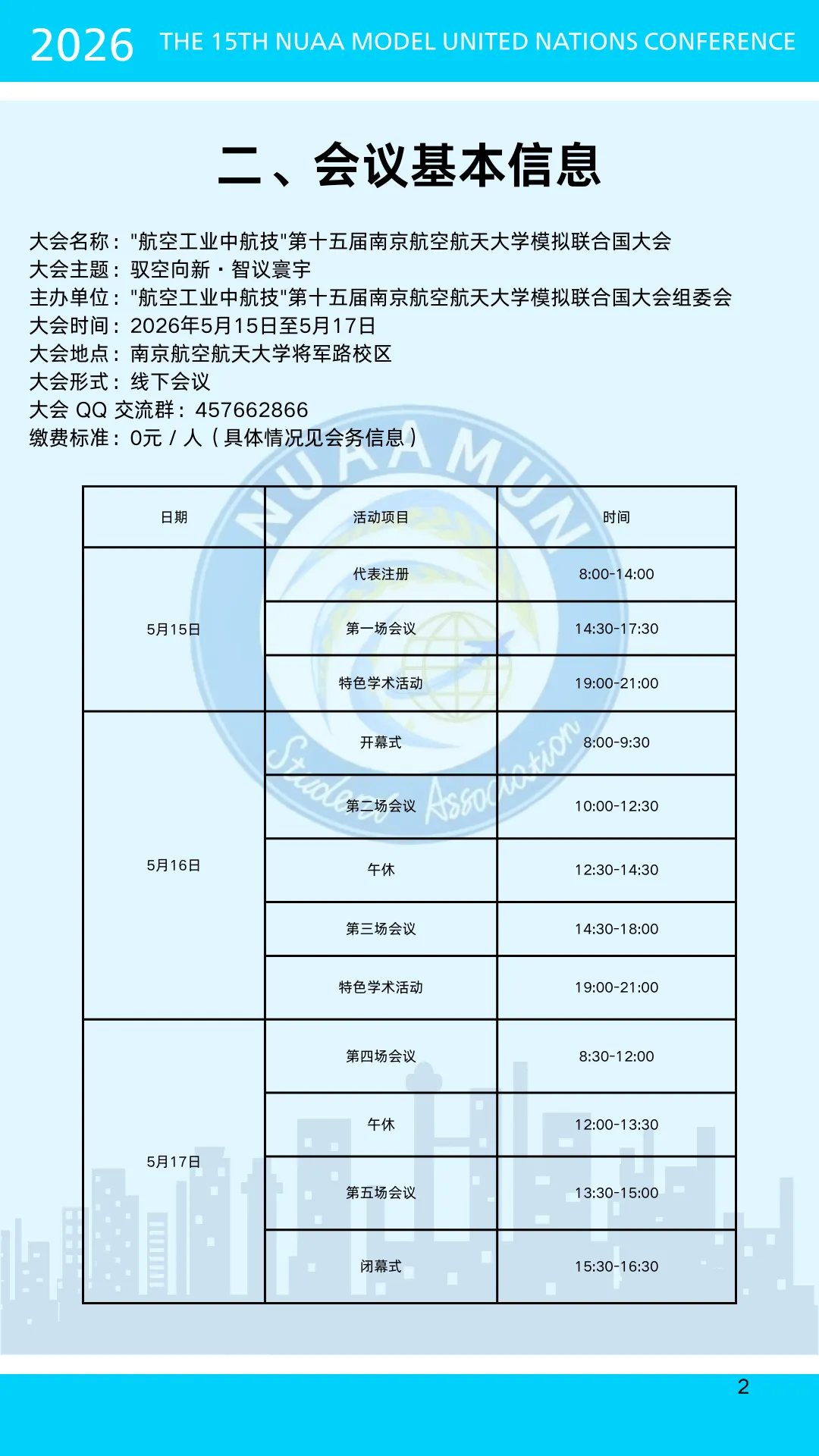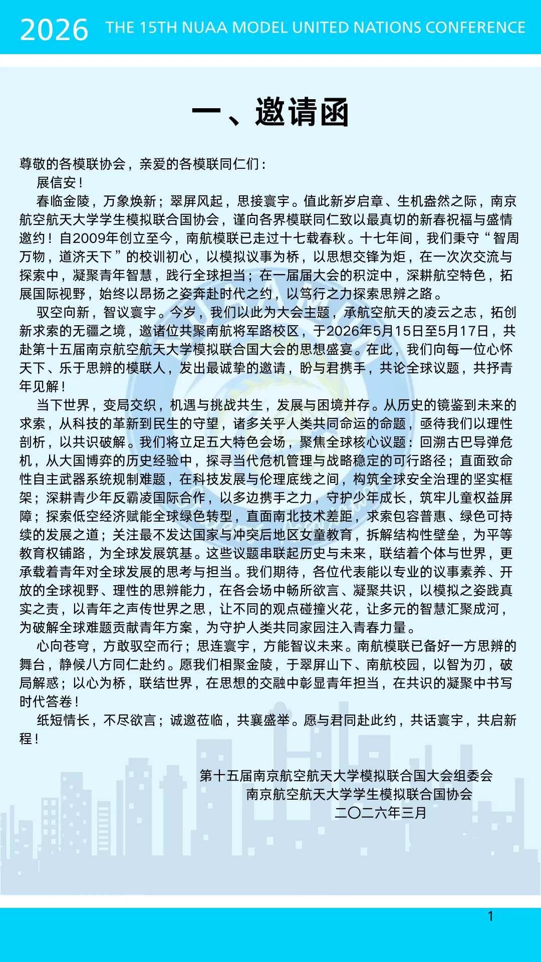 >一轮通告| “航空工业中航技”第十五届南京航空航天大学模拟联合国大会