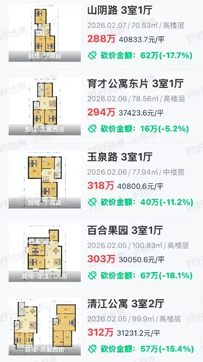 购买力翻倍,现在南京买房人简直太幸福。很多前几年觉得高不可攀的房子,现在很便宜就能买到。如果你现在总价预算300万,甚至可以杀进富人区,买豪宅了。去年300万还只能买到仁恒江湾城70平的单室套,今年直接能买到两房,性价比更高了。对于很多年轻朋友来说,能用300万的门槛,住进豪宅小区,简直太幸福。而且刚开年南京就放大招,给出超大力度新房买房补贴,我很多研究生朋友,直接能拿到十几万的补贴,而且江宁区还直接每套房再减5万,直接把新房的价格也打下来了。现在贷款利率也很低,意味着购房成本大幅下降。比如,博士直接就能领15万元,还有人叠加各种政策直接领到江宁区23万多元的补贴,这也让南京新房的门槛大降,现在300万在南京,不论是买新房还是买二手房,都能横着走了。前两天我和朋友聊天时还感慨,2026年的南京买房人实在太幸福。放在5年前,如果你总价预算300万,手里只有三成首付的钱,很多售楼处验资那关就过不了,更别提大热摇号盘纷纷提高首付到5成、8成了。但现在,开发商降价求你买房,银行贷款也一降再降。打开最新的成交数据,你会发现,现在300万在南京能买的二手房小区实在太多,而且还都是优质地段的三房、四房,并非老破小、单室套:河西中部的万达西地一期,128平四房,255万元成交;河西南的五矿崇文金城,101平复式三房,280万成交;河西南的海峡城,132平大三房,282.5万成交;河西CBD的朗诗国际街区,118平三房,294万成交;河西奥体的银城西堤国际,93平两房,288万成交;鼓楼滨江的世茂外滩新城,134平大三房,299万成交;雨花摇号盘龙湖天钜,89平小三房,208.8万成交,单价2.3万;旁边的中海城南公馆,101平也只要266万,单价2.6万;小行的万科朗拾二期,去年刚交付,100平338万成交,单价3.39万;软件谷的华发美的云筑,100平米315.8万成交,当年新房要卖4万多;宁南的翠岛花城,117平三房,253万成交,单价2.15万;江宁南站的万科都荟天地,90平三房,210万成交,单价2.3万;九龙湖的万科翡翠公园,112平252.6万成交,比巅峰时期房价降一半;江宁当年的摇号红盘都会四季,现在125平205万成交,单价1字头;江北核心区的一大批楼盘,虽然房价比起几个月前涨了些,但目前来看性价比依然很高,要知道,下面这些楼盘当年都要首付8成,单价3万以上的:江畔都会上城,130平230万成交,单价1.76万;启迪水木滨江,138平252.2万成交,单价1.82万;大华锦绣江来,124平265.3万成交,单价2.1万;正荣润江城,142平米315万成交,单价2.2万……二、叠加房票政策,300万在南京,新房性价比更加凸显再来看新房。原本因为二手房价格太香,导致不少新房楼盘都很无奈,虽然品质很好,奈何买房人都对价格很敏感。然而现在,转机来了!人才新政直接抬高新房的性价比,尤其对于一些高学历人才,部分新房楼盘,直接能便宜20多万,而且公积金还能多贷,所以近期,很多新房都卖爆了。比如江宁的樾满云川,户型105-139平,总价300万-500万,如果你学历高,直接领十几万补贴,还能享受5万元直接优惠,300万轻松拿下105平精装房;比如雨花台区的联发雨花新澍,开发商本就是为年轻人做四代宅,起步户型69平,总价200万起,单价3万多,300万预算,完全可以买更大户型,叠加补贴,非常划算;此外,软件谷工程师、高校博士等人才扎堆在石林云城买房。因为这家楼盘原本房价就极具性价比,136平的四房,优惠后总价只要160多万,而博士可享25万补贴,硕士21万,本科17万!补贴高的话,算下来单价仅1.02万元/㎡,还是实景现房。