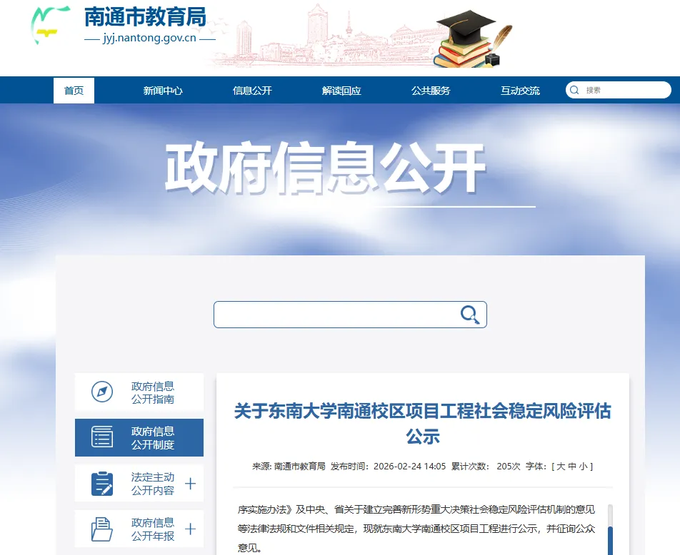 公示提到,东南大学是中央直管、教育部直属、“双一流”建设A类高校。为服务国家重大战略,服务社会重大关切,服务产业重大需求,南通市与东南大学拟于江苏南通创新区规划建设东南大学南通校区。