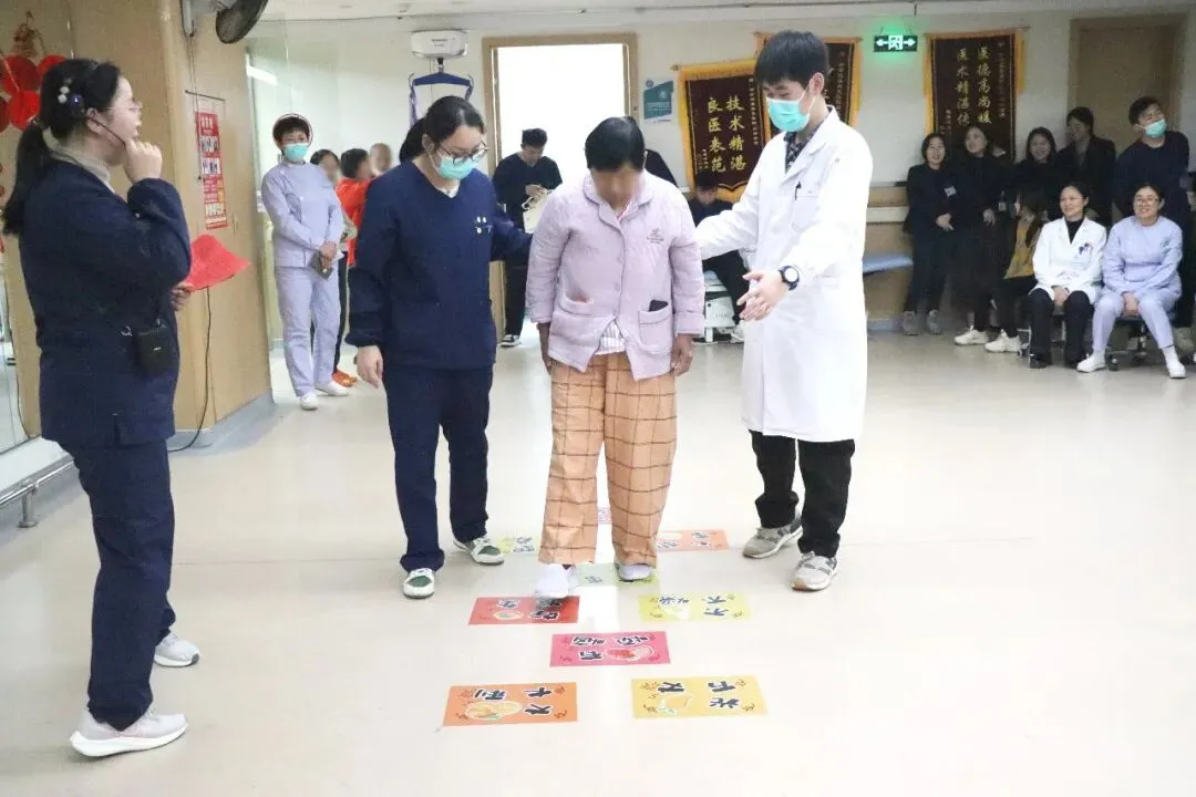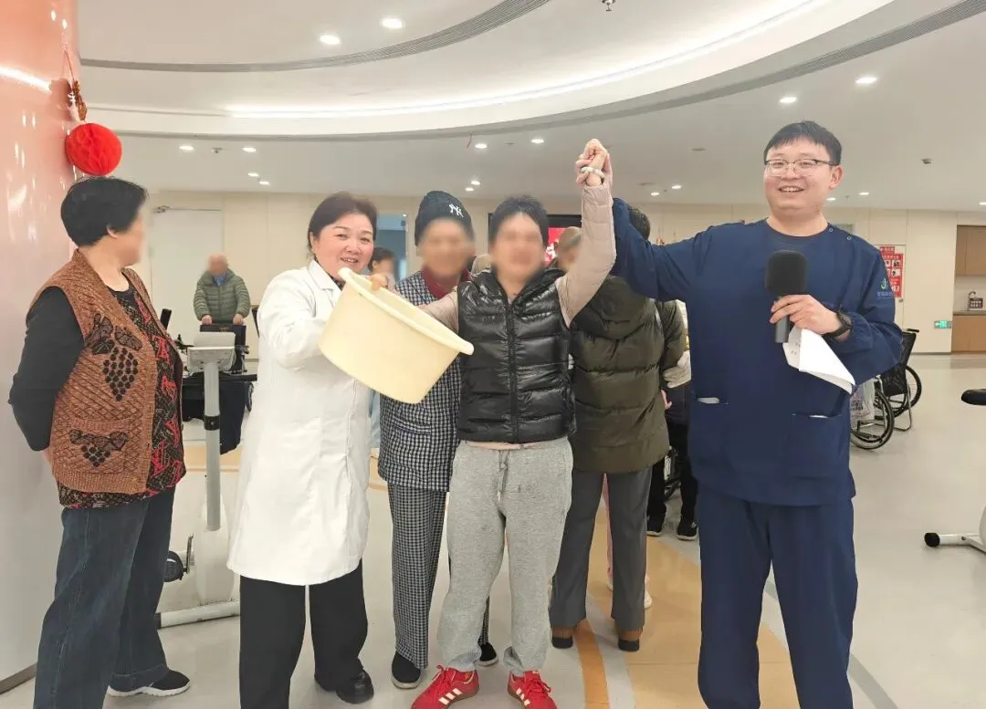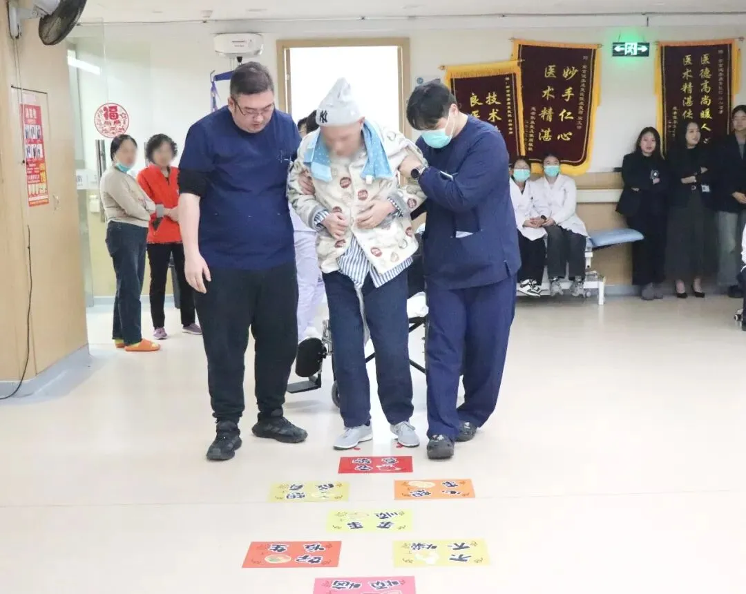 “加油!慢慢来,看准脚下的元宵图案!”康复大厅里,此起彼伏的加油声、欢笑声交织成最动人的节日乐章。本次活动特别设计了三项 “康复小挑战”,让患者在趣味游戏中锻炼康复能力,在互动协作中收获快乐与信心。