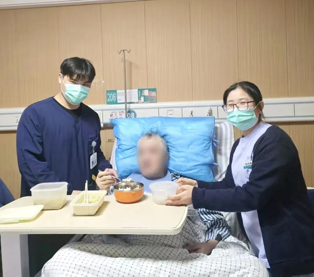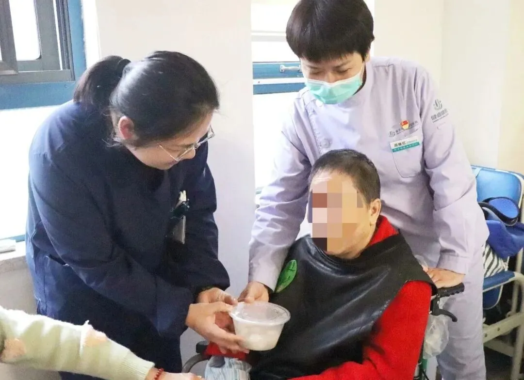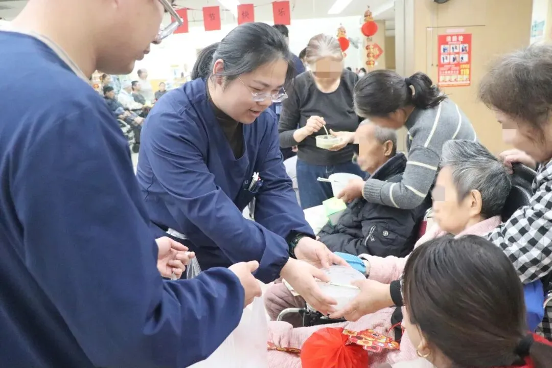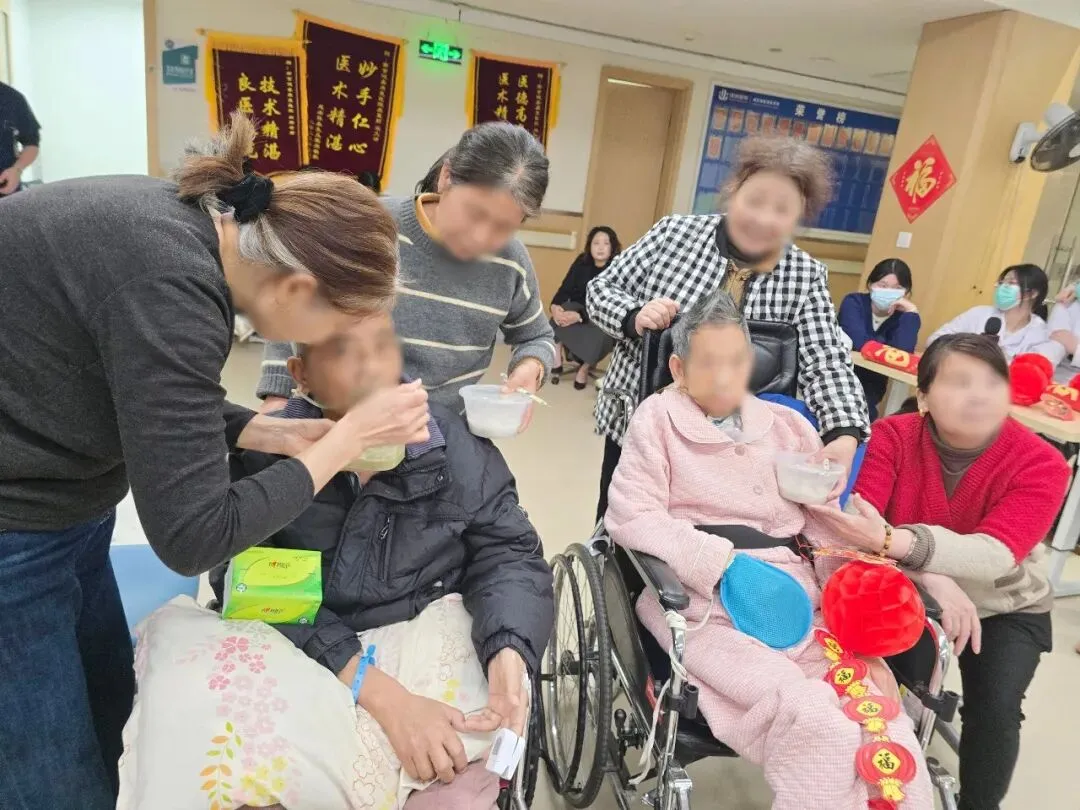 游戏过后,热腾腾的汤圆出锅了。一碗碗圆润饱满的汤圆,冒着氤氲的热气,散发着香甜的气息。医护康人员化身 “送福使者”,将一碗碗汤圆送到每一位患者手中,也送到了家属和工作人员的心坎里。