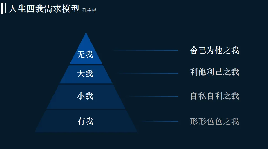 尤为感念的是,孔老师始终鼓励真实的表达。在他的课堂上,没有标准答案的束缚,每个思考都值得尊重。正是这份包容,让我逐渐敢于分享自己的困惑与领悟。他提出的“四我”理论不仅是一套方法论,更成为我检视自身成长的重要维度。