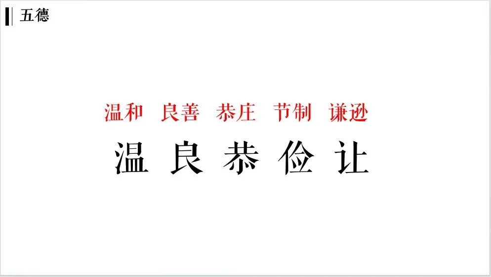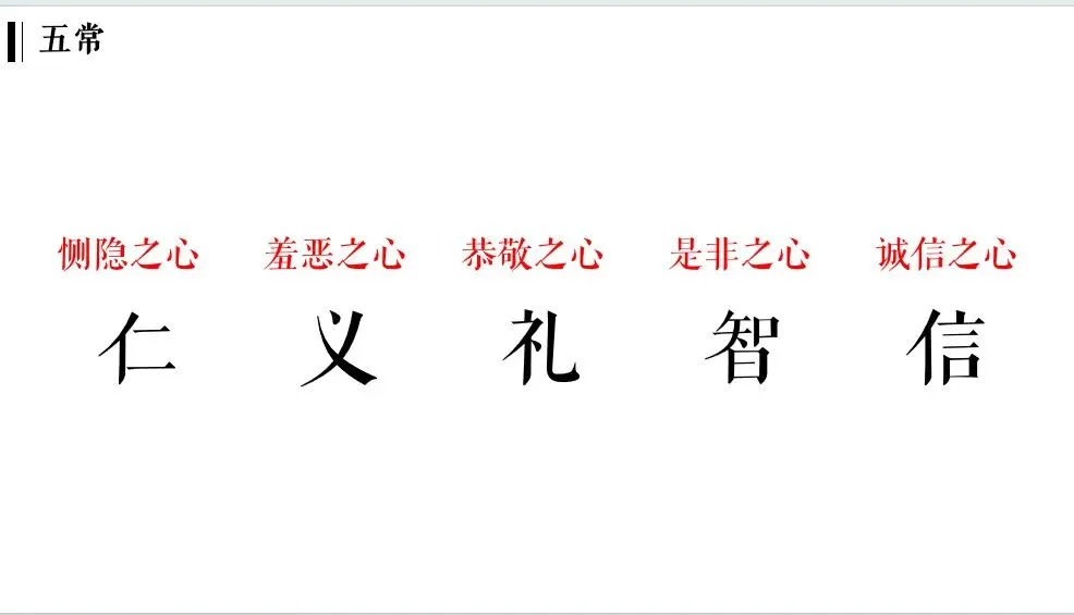 如何做一个温润如玉的君子呢?孔祥彬老师讲解了五常和五德。五常即仁、义、礼、智、信,具体来说就是恻隐之心、羞恶之心、恭敬之心、是非之心、诚信之心。