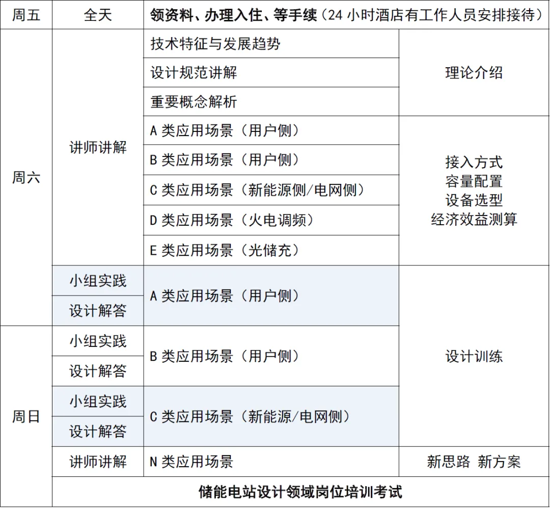 考试 | 周日 | 16:40-18:40 | 储能电站设计领域岗位培训考试 |