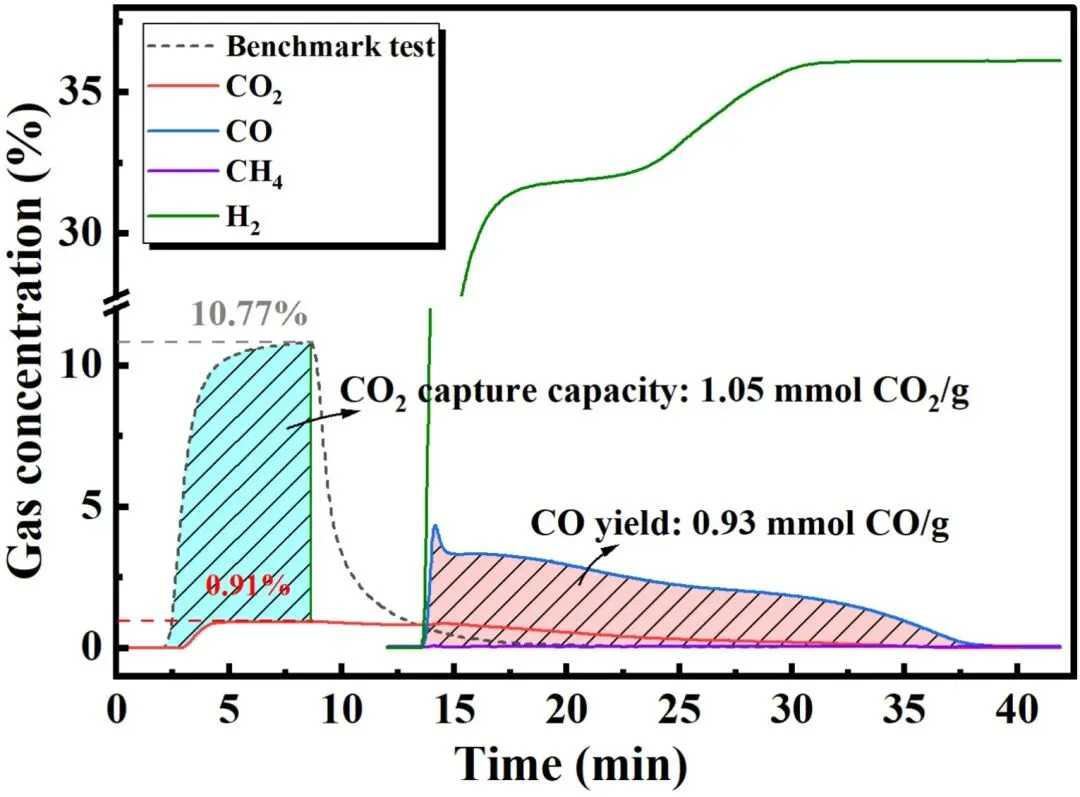 图3. 90% CO₂捕集效率模式下ICCU-RWGS过程的气体演化曲线。