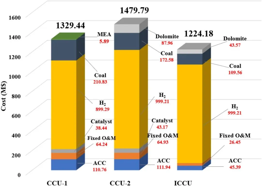 图8. CCU与ICCU工艺的CO成本。