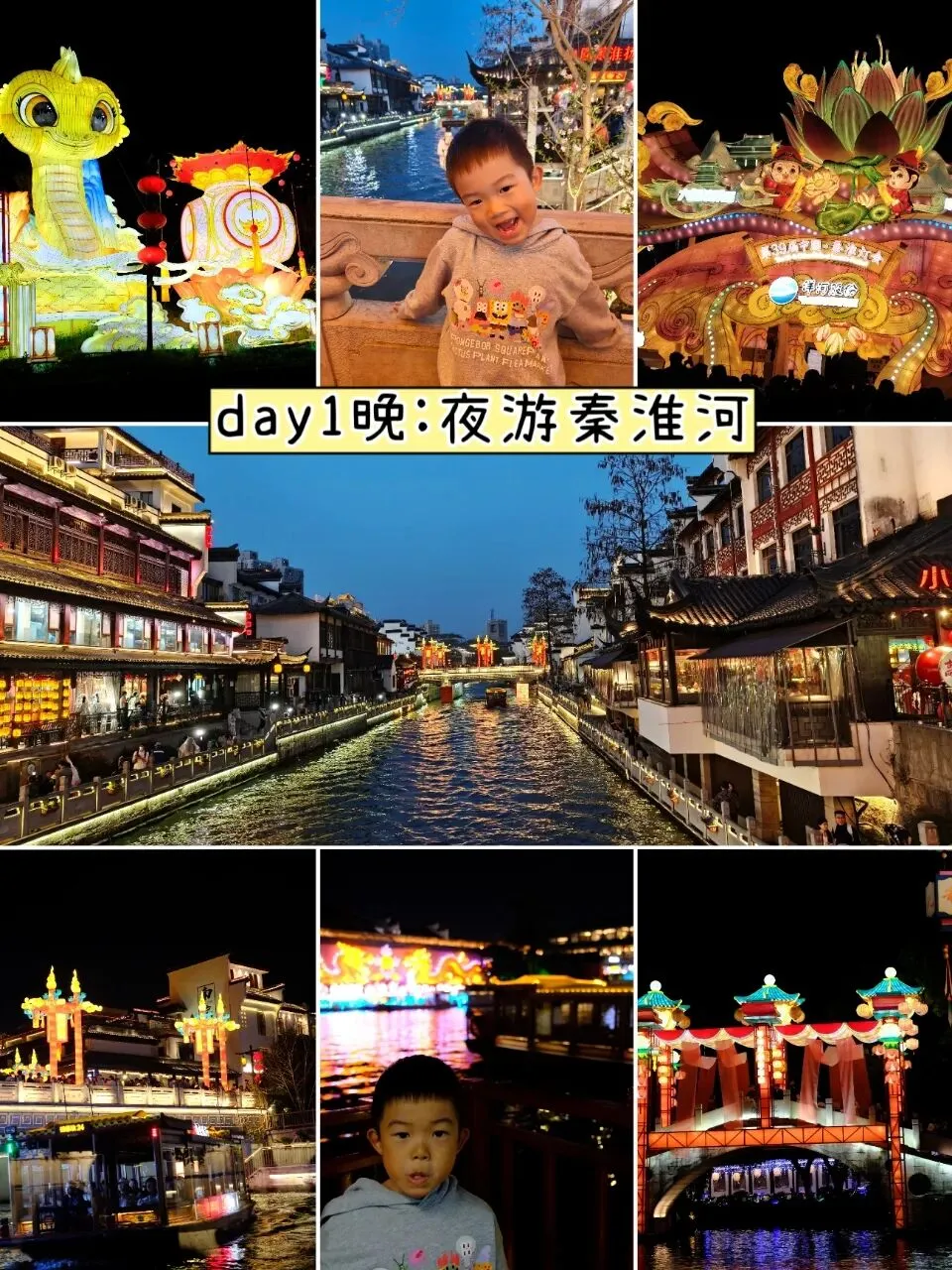 💡注意:夫子庙夜游秦淮的码头人真的超级多,尤其晚上7点左右是高峰期,排队1小时起还特别混乱✨ 一定提前1-3天线上平台购票,可锁定具体登船时段,到现场凭二维码直接检票,不用现场排队;没提前买票的也可以避开7-8点高峰,选择18:30前或21点后登船,人少还能安静赏景,另外白鹭洲公园码头比泮池码头人少,大家可灵活选择~