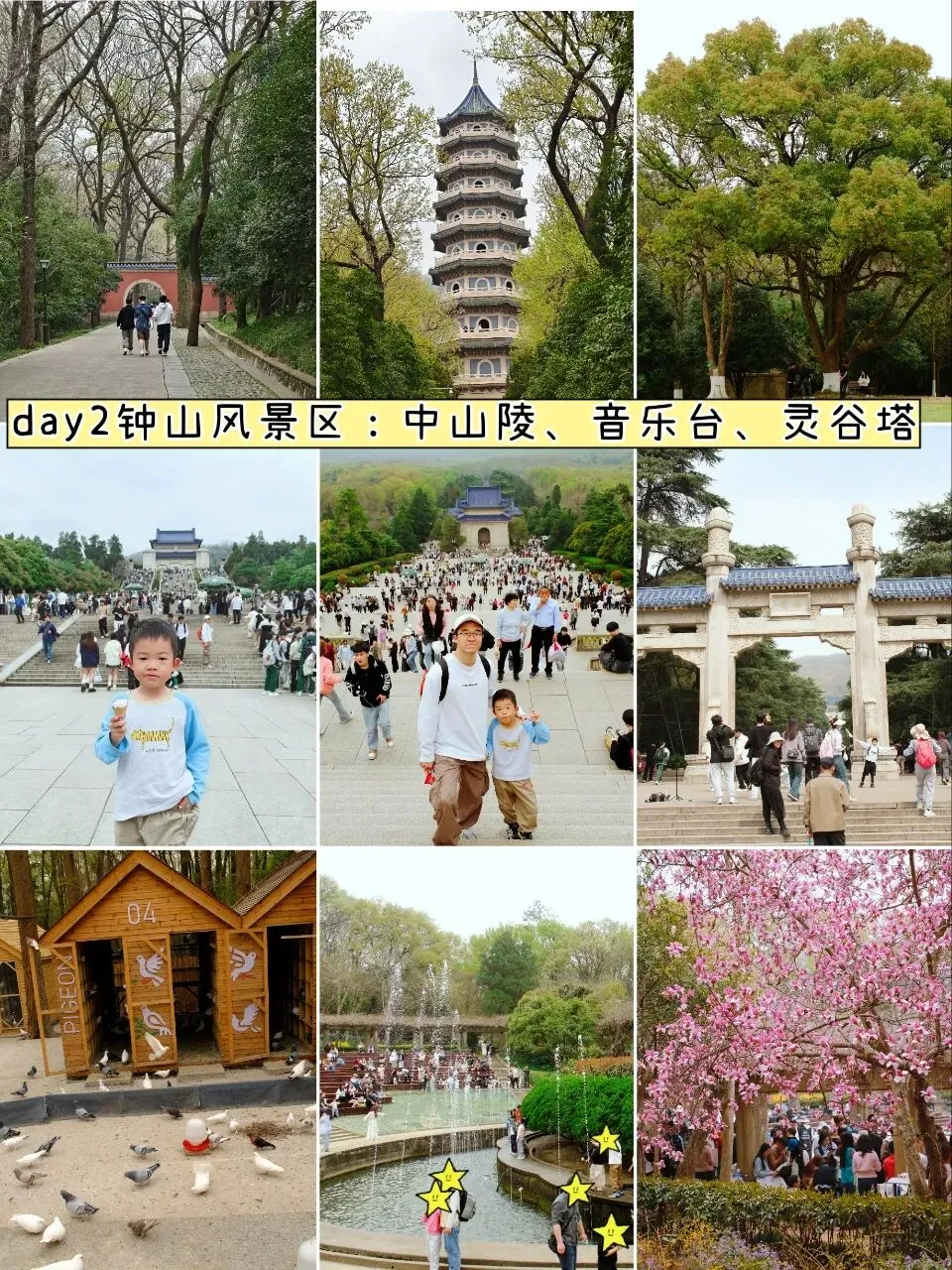 这一天的行程全在钟山风景区,建议穿舒服的鞋子,因为要走不少路!早上10点左右出发,地铁2号线苜蓿园站,出站后换乘景区观光车直达中山陵,沿着392级台阶往上走,登顶后可以俯瞰整个钟山风景区的美景,庄严肃穆又开阔。