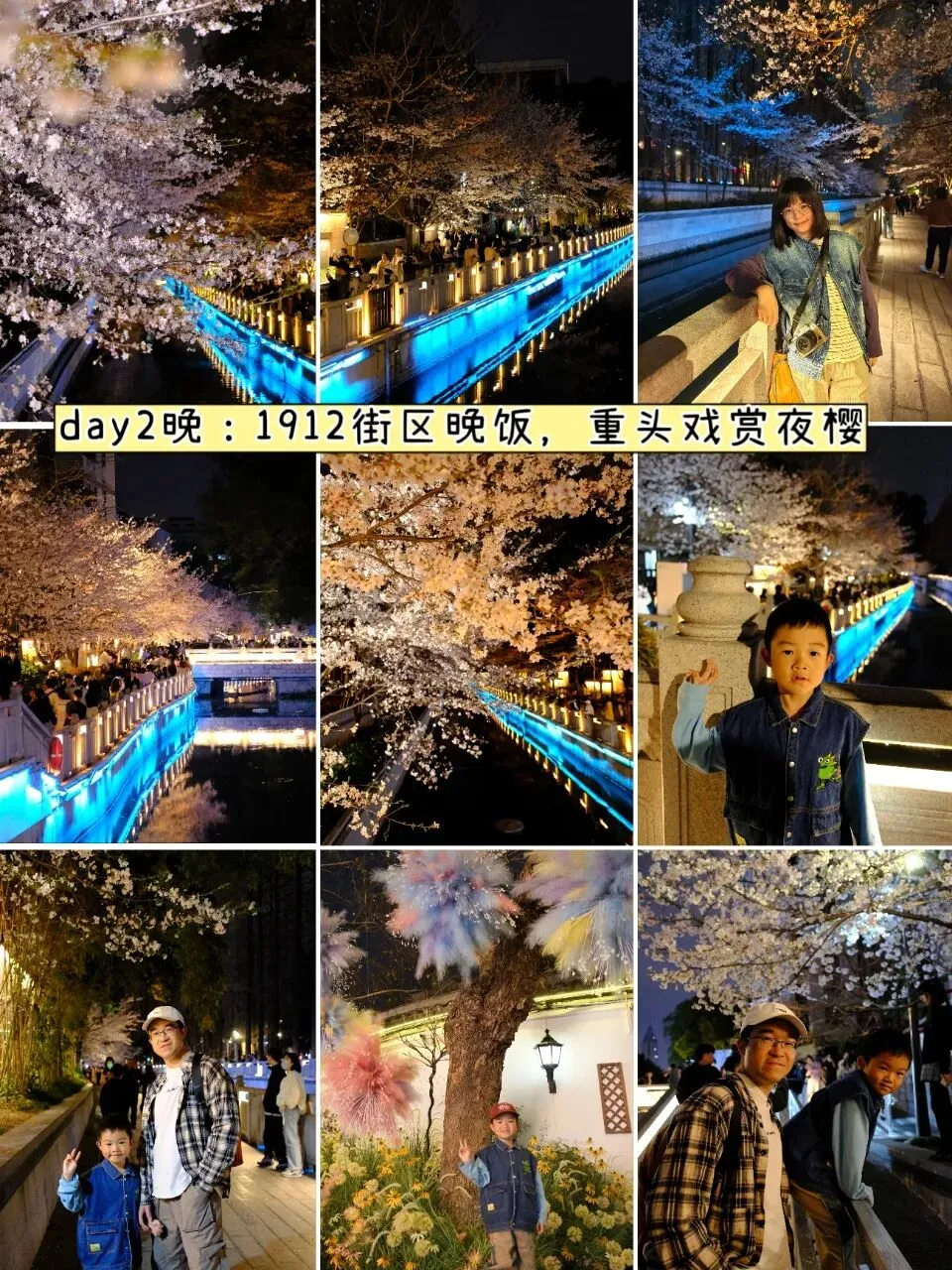 晚上出来以后奔1912街区,这里是南京的网红美食聚集地,各种菜系都有!饭后沿着街区溜达,步行十几分钟就到文昌桥,这里的夜樱真的封神✨ 粉白的樱花搭配岸边的灯光,朦胧又梦幻,而且没有白天的人潮拥挤,更添一份静谧的韵味。