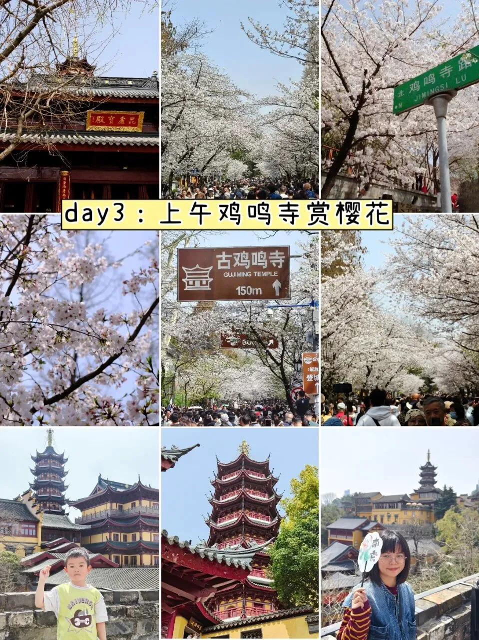 这一天的核心就是赏樱!早起去鸡鸣寺,这里是南京赏樱的热门地,禅意与浪漫并存,随便找一处墙角拍照,都能拍出古风大片。建议早点去,不然拍照全是路人。